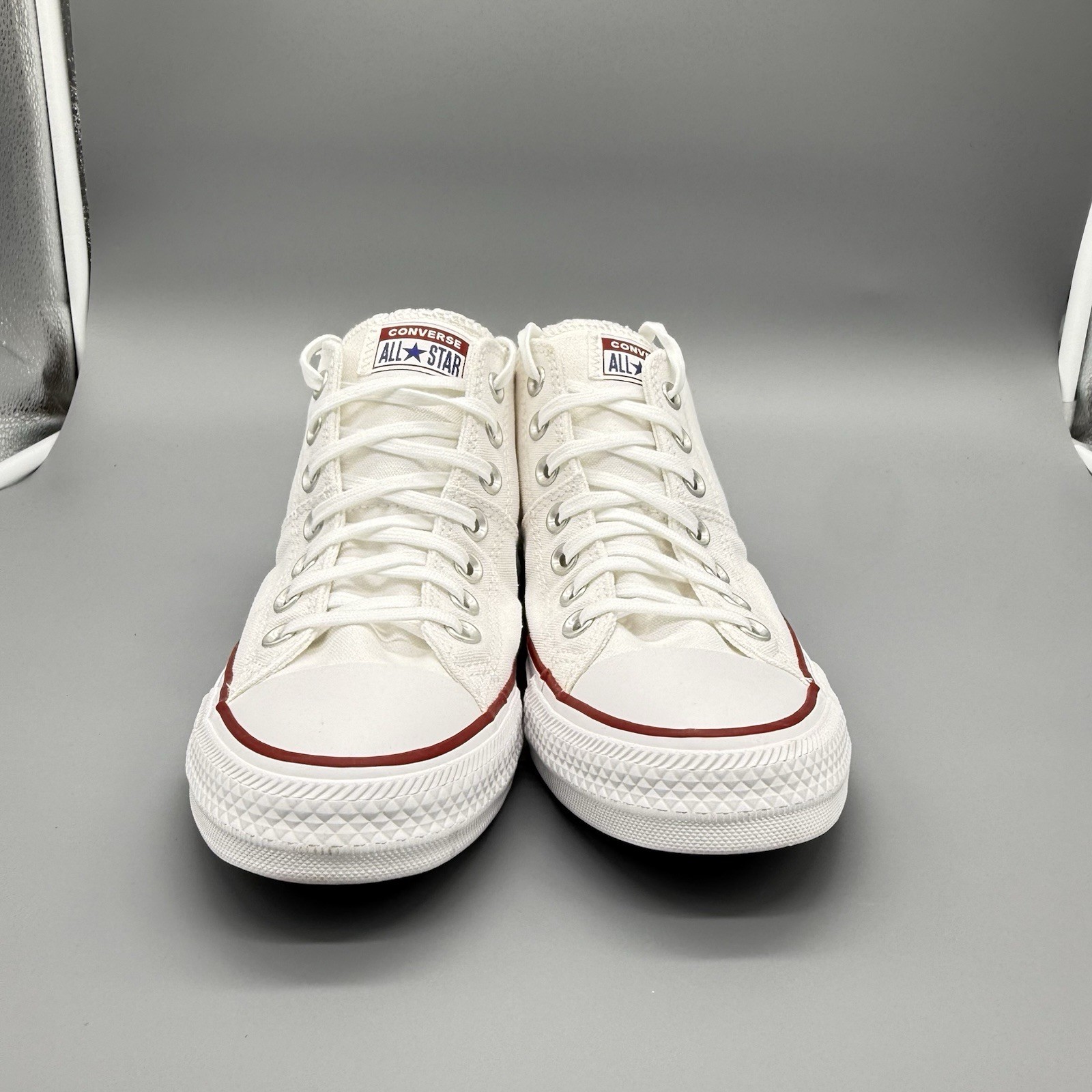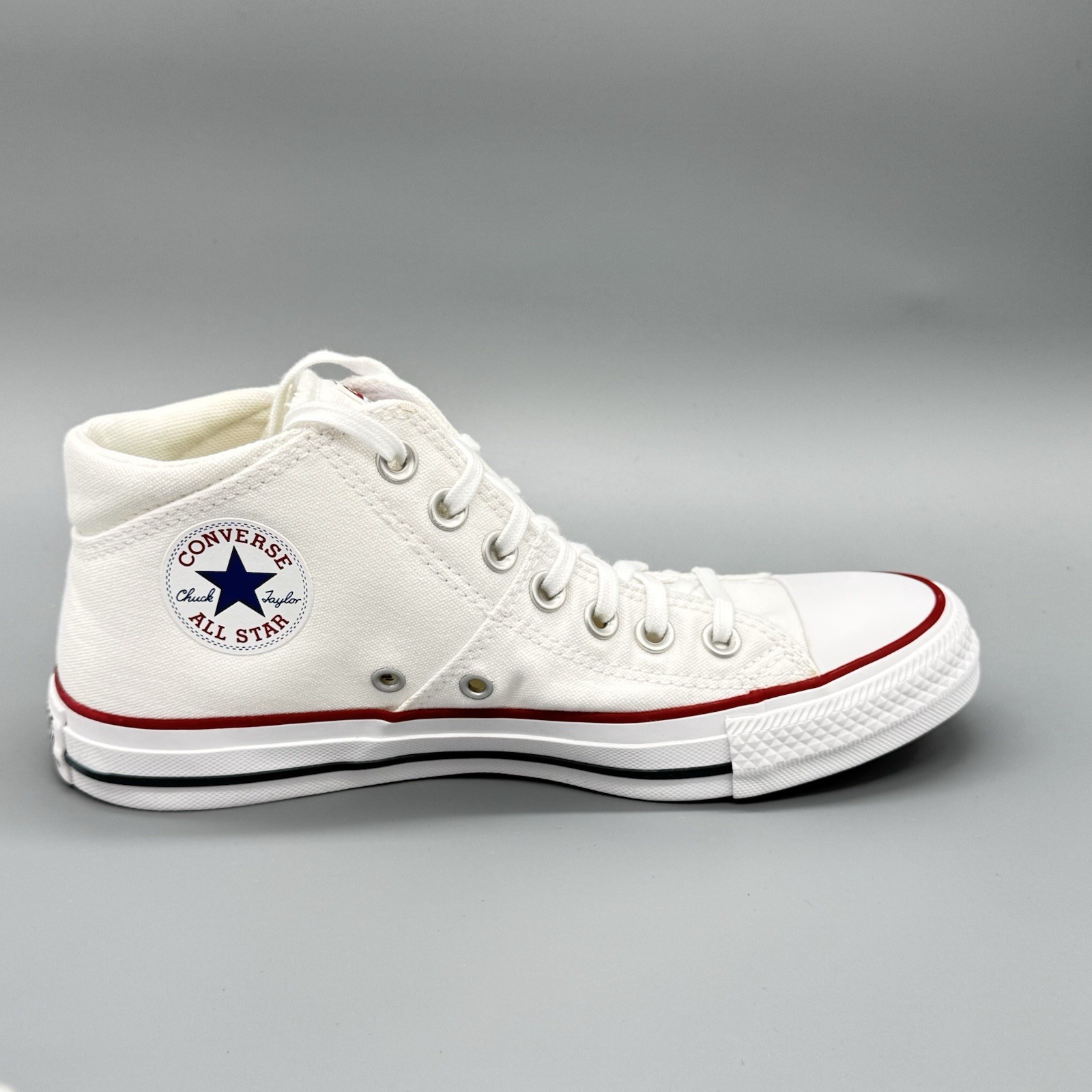 The Converse CTAS Madison Mid Women's Size 9 White Canvas Sneakers Classic 563511F are a stylish and versatile pair of athletic shoes perfect for various occasions from casual wear to activewear. Featuring a mid-top style with lace-up closure, these sneakers offer comfort and breathability with a cushioned design. The classic white canvas fabric and colorful star accents add a touch of retro flair, making them a fashionable choice for women looking for a comfortable and durable sneaker for everyday wear. Perfect for all seasons, these Converse sneakers are a timeless and reliable choice for any woman's wardrobe.