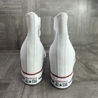 The Converse CTAS Women's size 11 White Canvas Wedge Shoes are a stylish and comfortable option for casual wear. These sneakers feature a lace-up closure, high-top shoe shaft style, and a rubber outsole for durability. The canvas material and foam insole provide a breathable and comfortable feel, making them perfect for the summer, fall, and spring seasons. With a solid white color and Converse logo accents, these shoes are fashionable and versatile for various occasions. The wedge heel adds a trendy touch to this classic sneaker design.