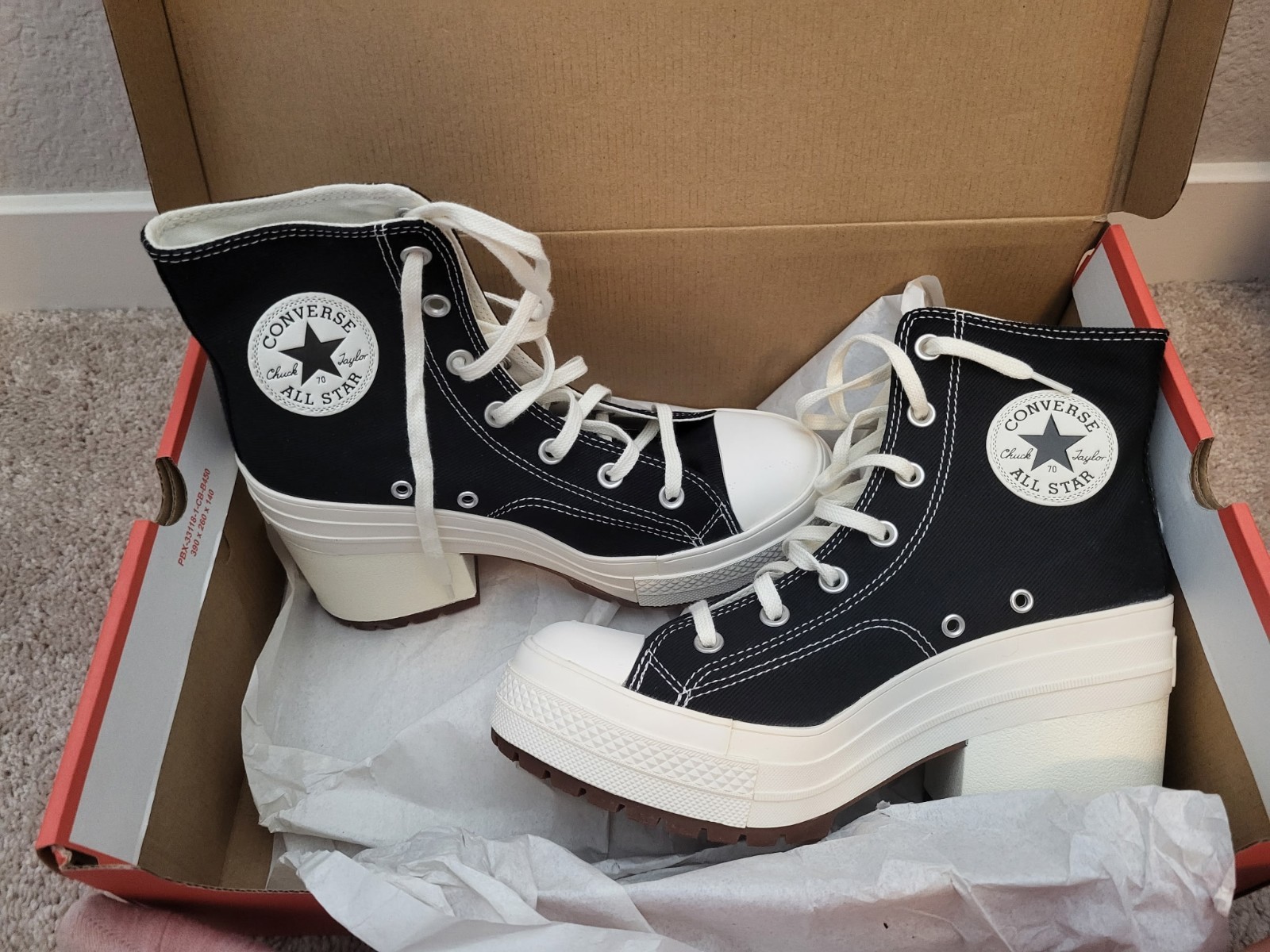 Converse Chuck 70 De Luxe Heel Black Platform High Heels A05347C Women’s Size 8. These shoes are new in box.
