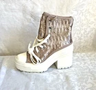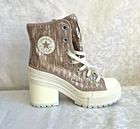 Elevate your sneaker game with the Converse Chuck 70 De Luxe Heel Hi, a contemporary twist on the classic high top design. These shoes feature a sleek mauve colorway that easily complements any casual or sporty ensemble. Catering to unisex adults, the size 5.5 (US) and 3.5 (UK) sneakers are a versatile addition to any wardrobe, providing both style and comfort. Crafted with a standard shoe width for a comfortable fit, these Converse Platform sneakers boast the distinct A09780C style code, confirming their authenticity. The shoes are manufactured in Vietnam, ensuring the quality and craftsmanship synonymous with the Converse brand. With a sturdy high top shaft and a striking platform character, these sneakers blend nostalgic design with modern flair. Mens 3.5 Womens 5.5