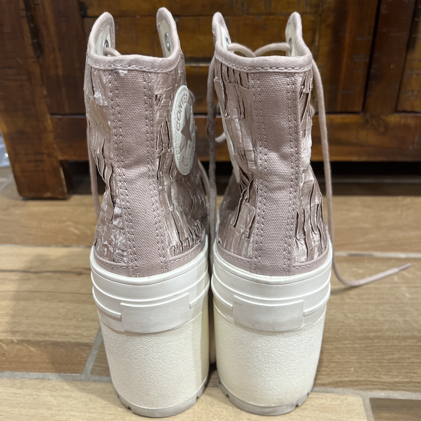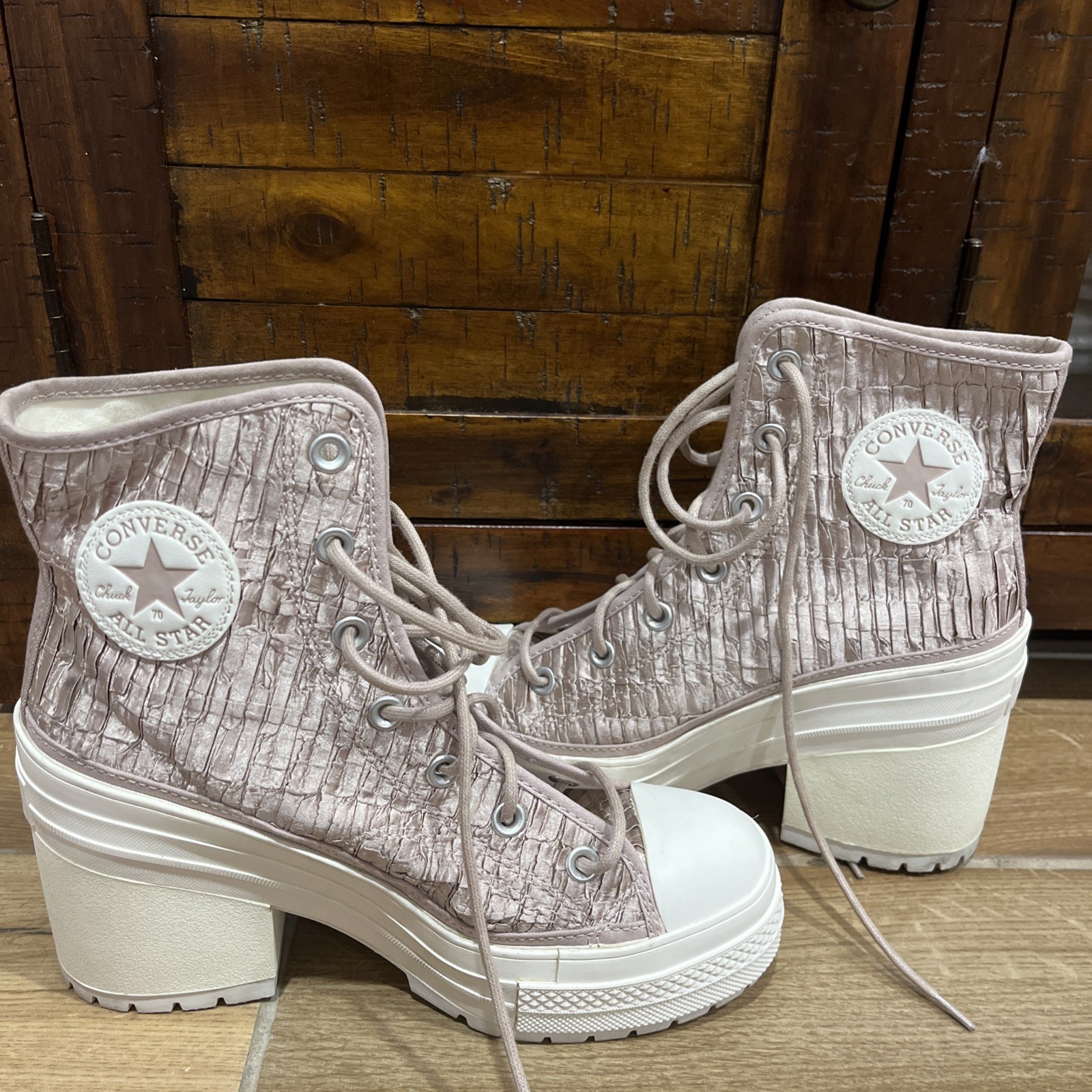 The Converse Chuck 70 De Luxe Heel Satin Pink Chaotic Neutral Platform Sneaker is a stylish and comfortable athletic sneaker designed for both men and women. Used shoes in good condition. I don't have the box.