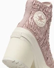 A chic take on the De Luxe Heel. Allover wrinkled satin brings unexpected texture and a ritzy twist to this premium high-top. Wrinkled satin upper brings a luxe spin to the iconic Chucks look OrthoLite cushioning helps provide optimal comfort Chunky, lugged heel amps up the height and style Iconic Chuck Taylor ankle patch and All Star license plate SKU: A09780C Color: Chaotic Neutral/Egret Size: 6.5 MSRP: $130 Track Page Views With Auctiva's Counter
