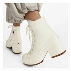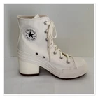 CONVERSE Chuck 70 De Luxe Heel 100% authentic New without box TONED DOWN OR PLAYED UP The Chuck 70 De Luxe pairs unmistakable Chuck Taylor design elements with a bold, lugged heel for a fresh spin on a favorite. This edition takes your style even further, with a cotton twill upper and neutrals for easy pairing with your whole wardrobe. Color: Egret Size: US 9, UK 7, EURO 40, 25.5 cm Materials: Upper textile, Lining Textile, Outsole Rubber High-top heeled-shoe with durable canvas upper OrthoLite cushioning for comfort Lugged sole for grip A chunky platform heel ups the height. Heel height: 3 inches Classic Chuck Taylor ankle patch SKU: A05348C See photos attached for more details See our other items