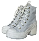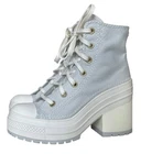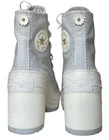 Worn only once and in excellent condition women’s Converse Chuck 70 De Luxe Heel Shoes in Grey Egret colorway, size 6. Shoes in photos are the shoes that will ship. See below for detailed information from Converse. Ships fast from a smoke-free home by USPS Ground Advantage. If you've been looking for a sign to stop and smell the flowers, this is it. The always-bold Chuck 70 De Luxe Heel gets a summer-ready refresh, with pops of contrast stitching and blooming floral hits. Just add sun. WHY YOU SHOULD BE DOWN • Classic canvas for that timeless Chucks look and feel • OrthoLite cushioning helps provide optimal comfort • Faux leather, studded daisy applique at heel • A chunky platform heel ups the height • Faux leather, metallic Chuck Taylor ankle patch • SKU: A07551C