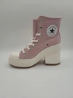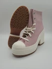 Elevate your style with these limited edition Converse Chuck 70 De Luxe Heel sneakers in a stunning Static Pink colorway. These high-top shoes feature a lace-up closure and rubber outsole for durability, making them perfect for casual wear or activewear. The cushioned insole and breathable fabric lining ensure comfort all day long. With a solid pattern and logo accents, these sneakers are a perfect addition to your shoe collection. The Converse All Star Chuck Taylor design is a classic and stylish choice for any occasion, whether it's a day out with friends or a workout at the gym. These shoes are available in Women's US Shoe Size 6.5 and UK Shoe Size 4.5, making them a great fit for most women.