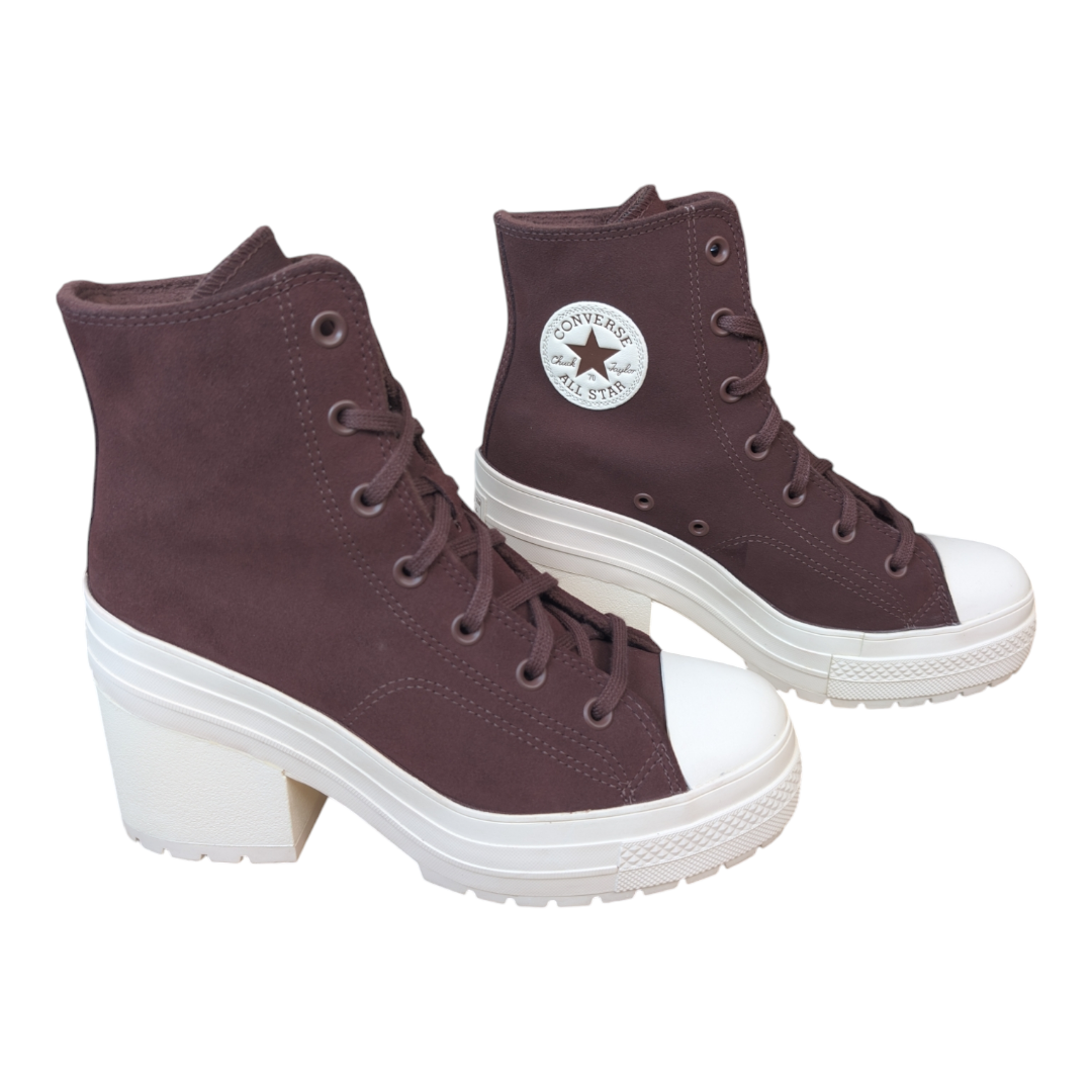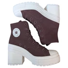 An off-duty look with on-duty attitude. These heeled suede Chucks bring elevation in every sense—chunky lug sole, warm earth tones, and a high-top silhouette that’s ready for cooler nights and breezy summer fits. Retail: $125 Size: Unisex - US Mens 7.5 | US Womens 9.5 | UK 7.5 | EUR 41 | CM 26 Style: Chuck 70 De Luxe Heel X-HI | A06782C Color: Eternal Earth Brown | Egret | Egret Great pre-owned condition. Minor interior wear. Clean and ready to wear. Please review all photos. • High-top platform heel with a suede upper • Fleece lining adds softness for transitional temps • OrthoLite cushioning for comfort • Bold lug sole for extra height and grip • Classic Chuck Taylor ankle patch heeled Converse boots, suede platform sneakers, brown high top heels, street style outfit shoes, concert-ready footwear, summer-to-fall sneakers, elevated everyday shoe, neutral tone streetwear, chunky heel casual boots, fashion sneaker for travel