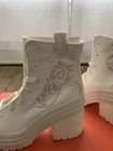 The Converse All Star Chuck 70 De Luxe Western Heel sneakers are designed for women in a stylish white color. These athletic sneakers feature a unique Western theme with a heel detail, offering a fashionable twist to the classic Converse Chuck 70 style. This size 7 shoe is part of the Converse product line, known for its quality and comfort, making it a trendy choice for those looking to add a touch of Western flair to their wardrobe.
