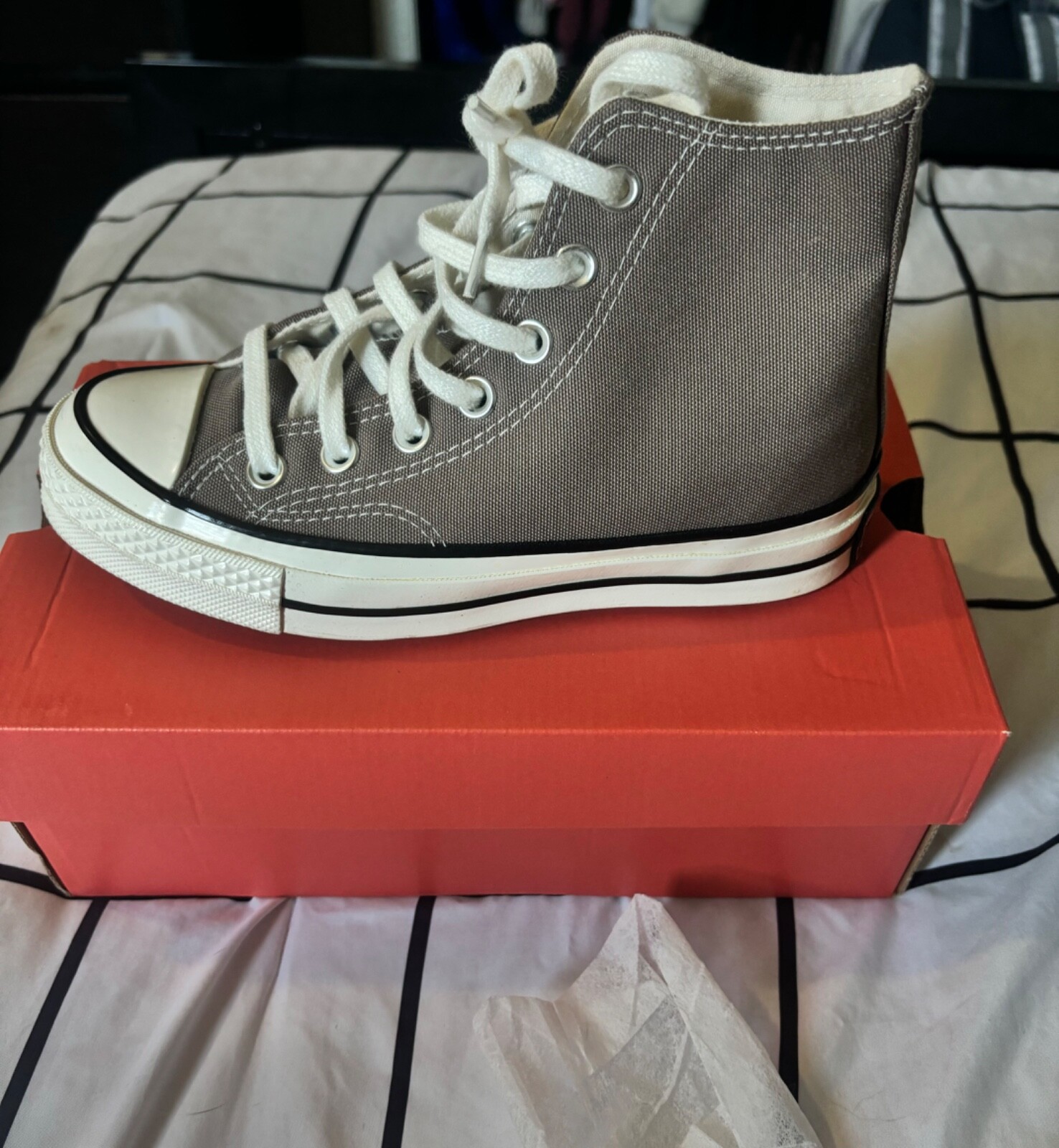 Elevate your style with these Converse Chuck 70 hi Desert Cargo/Egret/Black sneakers. Perfect for men with a UK shoe size of 3 and women with a US shoe size of 5, these sneakers are a must have for fall. The beige color, combined with the sleek design and comfortable fit, makes these sneakers ideal for any occasion. Crafted with the highest quality materials, these Converse Chuck 70 sneakers are built to last. The sneaker's style code is A00753C, and it belongs to the Converse Chuck 70 product line.