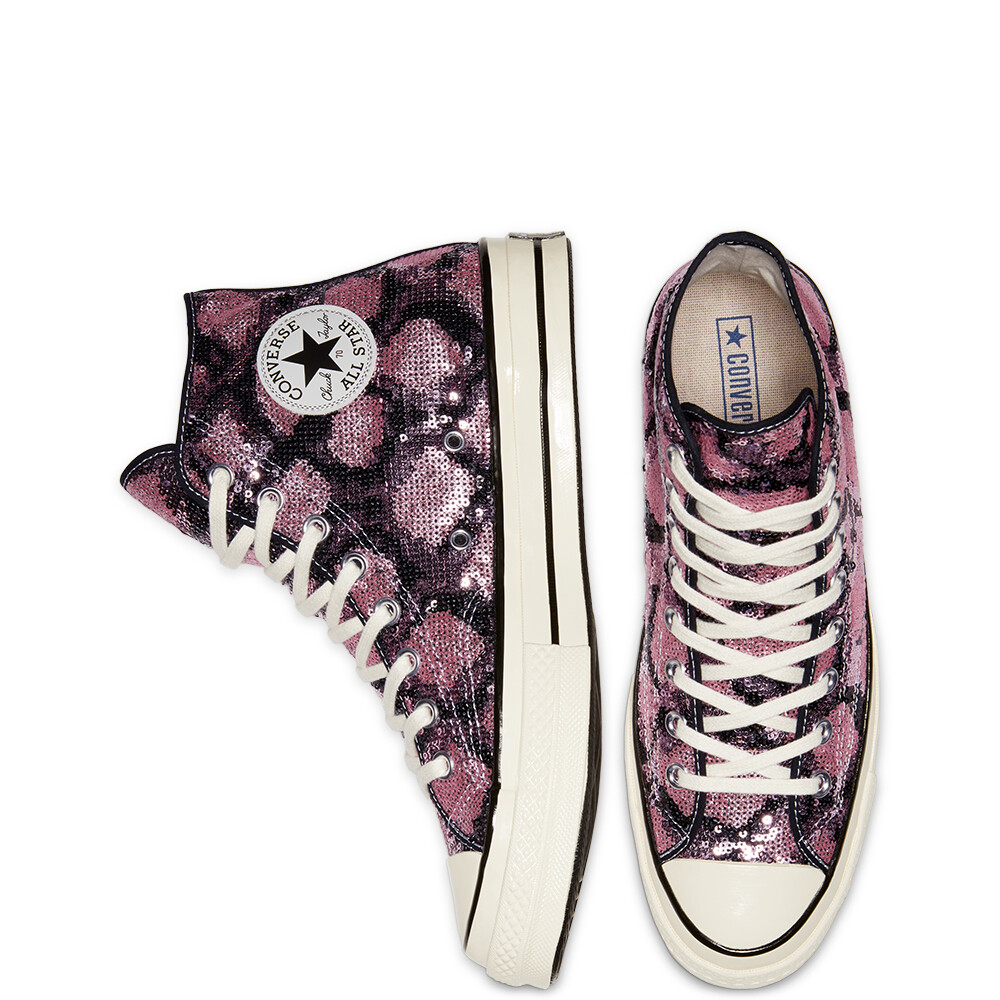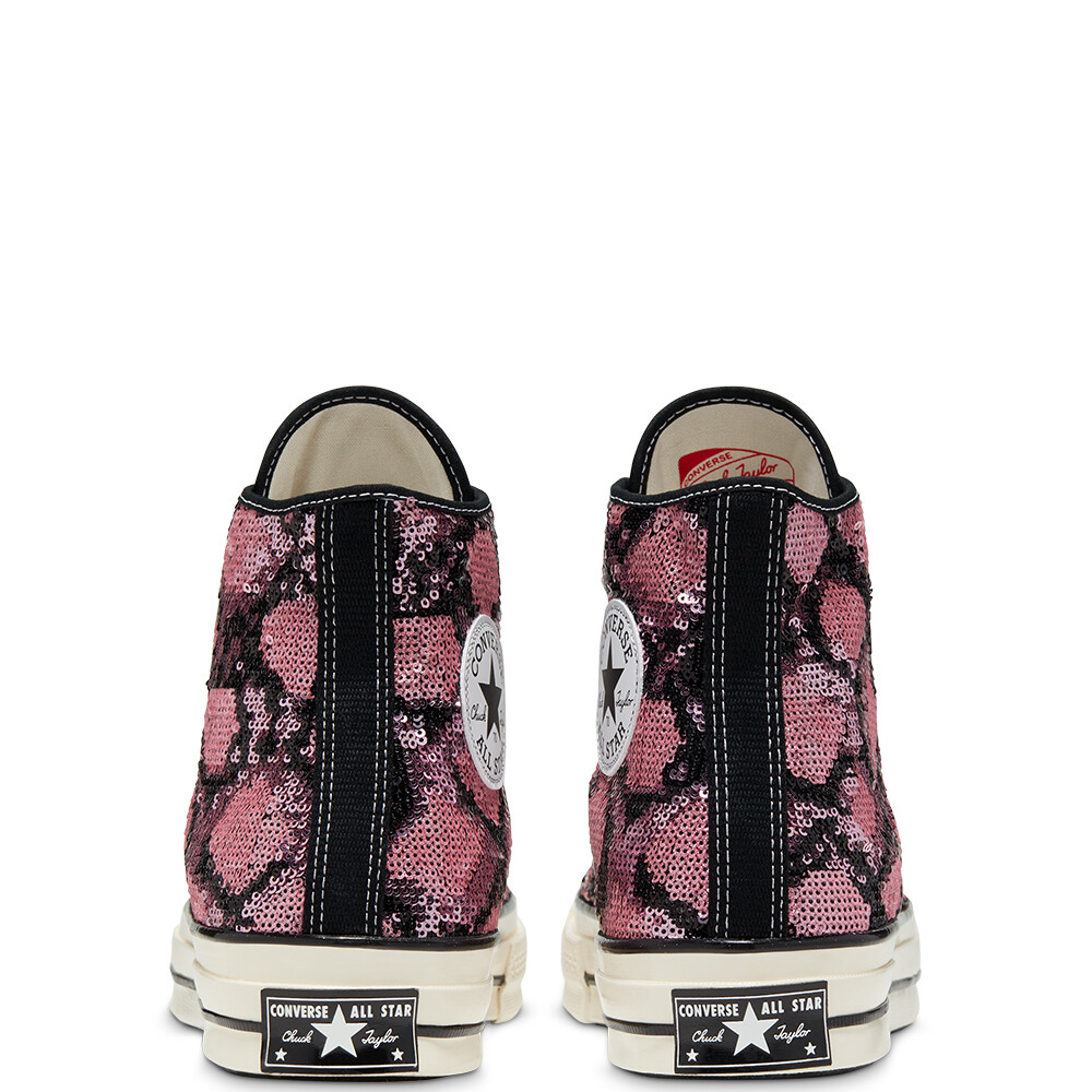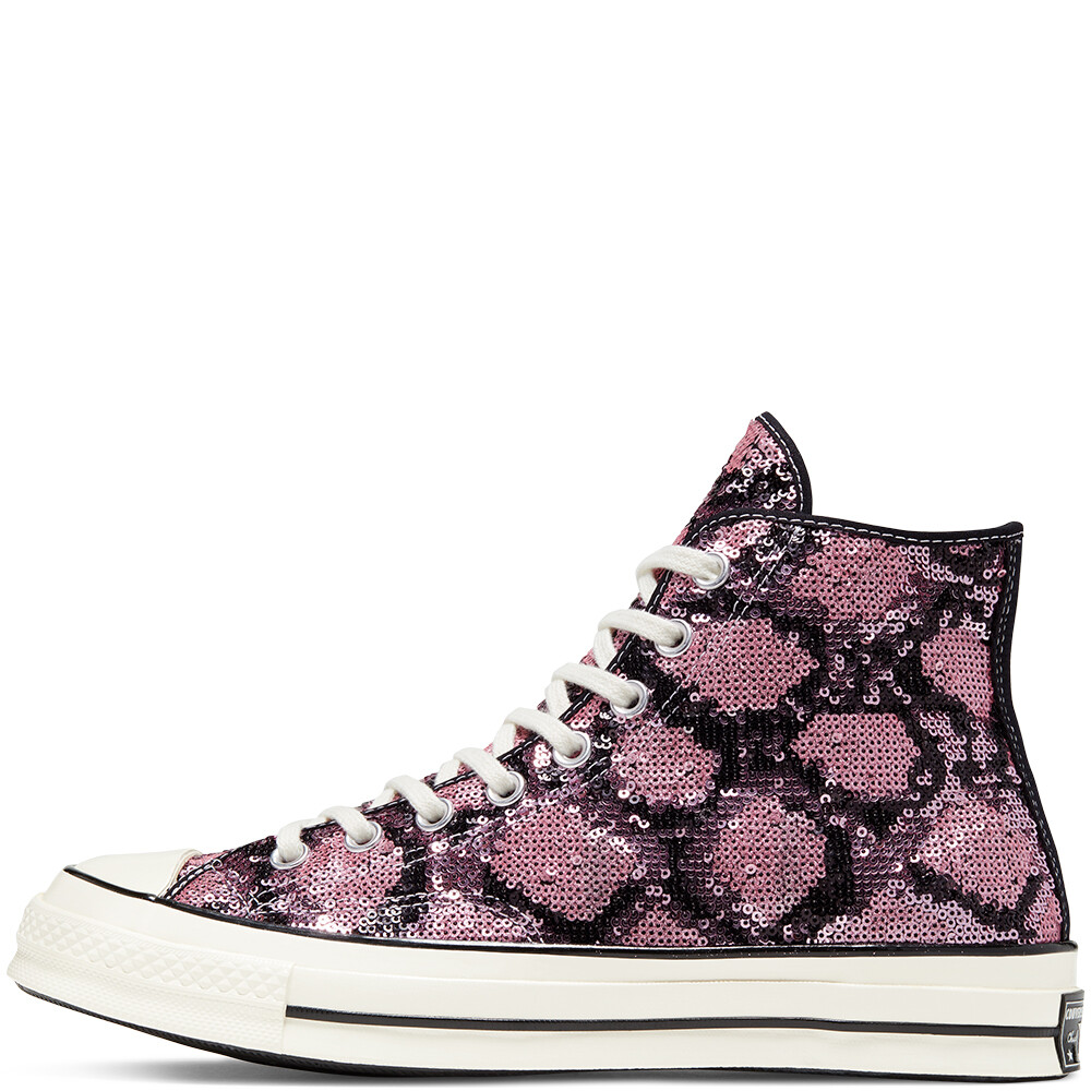 Snakequins Chuck 70 EXOTIC SHIMMER. Edgy and playful all at once, the Snakequins Chuck 70 is made for standing out. All-over sequins in a snakeskin pattern bring shine and attitude to your go-to sneakers. Whether you're off to a party or taking your everyday look to the next level, you need these in your life. Hi/ SYNTHETIC