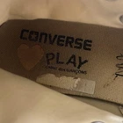 The product is a women's size 5 Converse Chuck 70 High x Comme des Garcons Play Hi Top Sneaker. This sneaker features a high top style with a solid white color and lace-up closure. It is part of the Converse Chuck 70 product line, known for its comfort and durability. The sneaker is made with canvas material and has a rubber outsole suitable for walking and other athletic activities. It is a stylish and versatile shoe perfect for casual occasions during the summer, fall, and spring seasons.