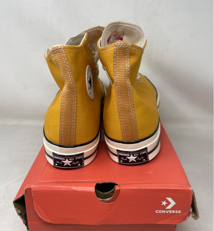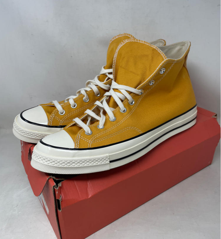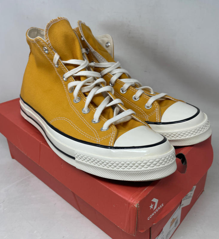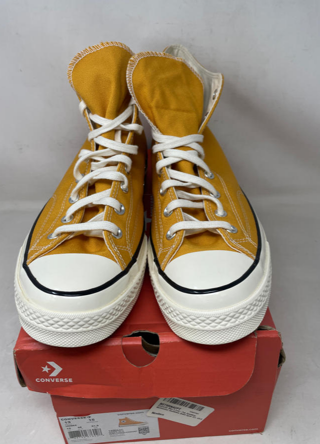 Converse Chuck 70 Canvas High-Top Sneaker, Sunflower/Black/Egret, Size 13M/15W in a damaged box: Converse Chuck 70 Canvas, High-Top Sneakers Color: Sunflower (Yellow), Black, Egret Size: 13 Men's / 15 Women's Features Fabric: Canvas Rubber sole Rubber cap toe, Logo patch Lace-up at top Details Product Dimensions: x x inches Item Weight: 2.85 pounds Shipping Weight: 2.85 pounds Manufacturer: Converse Item color: Sunflower/Black/Egret Item model number: 162054C Item MPN: 162054C_721 Item part number: 162054C_721 Fast and Free Shipping You're already purchasing the item. Why pay additional for shipping, especially slow shipping? We get your order shipped out within 1-business day and delivered to your doorstep as quickly as possible. Competitive Pricing With our dynamic pricing model, our prices are always competitive. Our prices are some of the lowest that you will find on the internet. Rest assured that you're getting a good deal when purchasing with us. 30-day Money Back Guarantee We are committed to making sure that you leave this transaction satisfied. If you're unhappy with the product for any reason, you may return it back for your money-back or a replacement within 30 days. No questions asked!
