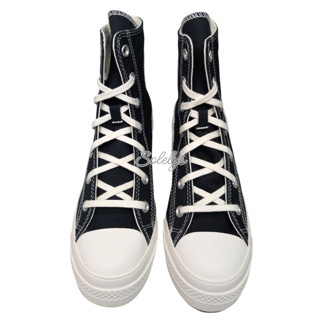 The Chuck 70 gets leveled up—literally. This version trades the standard flat sole for a bold, lugged heel that adds height without losing the signature Chuck look. The black canvas upper and egret midsole keep it neutral, while the exaggerated 3" platform adds structure and edge. A standout silhouette that still plays well with everything. Size: Unisex - US Mens 9.5 | US Womens 11.5 | UK 9.5 | EU 43 | CM/JP 28 Style: Chuck 70 De Luxe Heel / A05347C Color: Black/Egret/Egret Brand new with box. Minor box damage. All photos in the listing are original/taken by me. Details: • High-top canvas upper with rubber cap toe • Lugged platform heel, approx. 3" height • OrthoLite insole for added comfort • Classic black / egret colorway + classic ankle patch The Chuck you know—just higher.