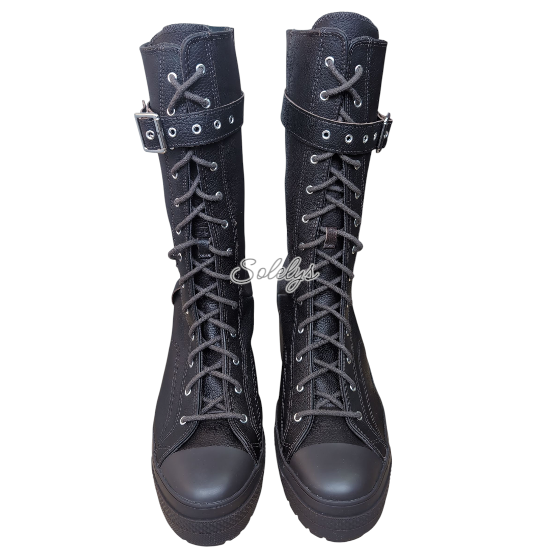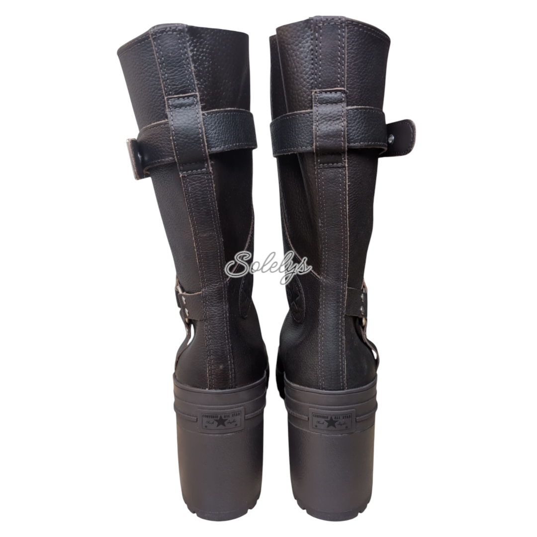 The Chuck 70 De Luxe Heel XXHI: A platformed evolution of the mid-aughts Star 70 boot—same combat soul, new commanding silhouette. This is what it looks like when a 2000s original grows up, glows up, and gains three inches. Crafted from full-grain leather with grommeted buckle detailing and a stacked heel, it revives that era-defining energy—this time built more for turning heads than taking hits. Size: Unisex - US Mens 11 | US Womens 13 | UK 11 | EU 45 | CM/JP 29.5 Fit: Per Converse, this style runs large. Order a half size down Style: Chuck 70 De Luxe Heel XXHI / A15659C Color: Mudguard / Black / Black Brand new with box. All photos taken by me. Minor box wear. ✨ Features: • Full-Grain Leather – Luxe, textured upper with paneling and tonal stitching that delivers structure and polish • Laced to Impress – 13 eyelets and wide-set lacing bring visual height without the bulk • Functional Strap – Adjustable top buckle with grommet hardware that locks in the look and fit • Harness Detail – Decorative stitched-down ankle panel with O-ring hardware for that extra layer of edge • Stretch Laces – Elastic laces keep the silhouette sleek and make them easy to slip on and off • Platform Power – 2.95″ lugged heel with memory foam cushioning—built to elevate (literally and otherwise) A silhouette reborn. A legacy reimagined. This is Converse evolution in its most striking form—where mid-2000s grit meets modern height in a statement built to last.