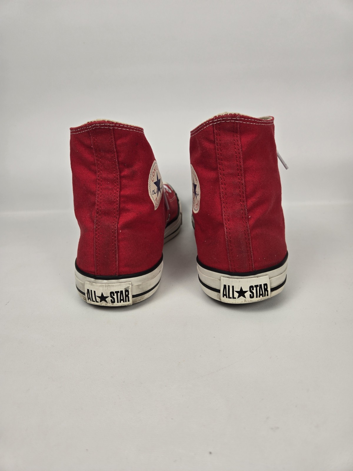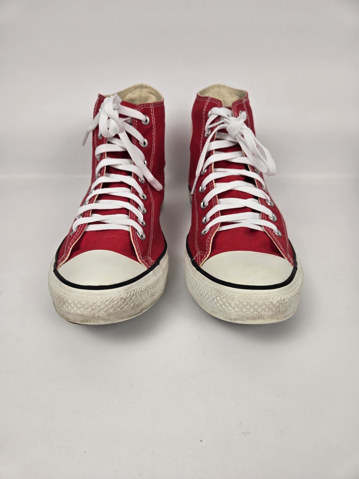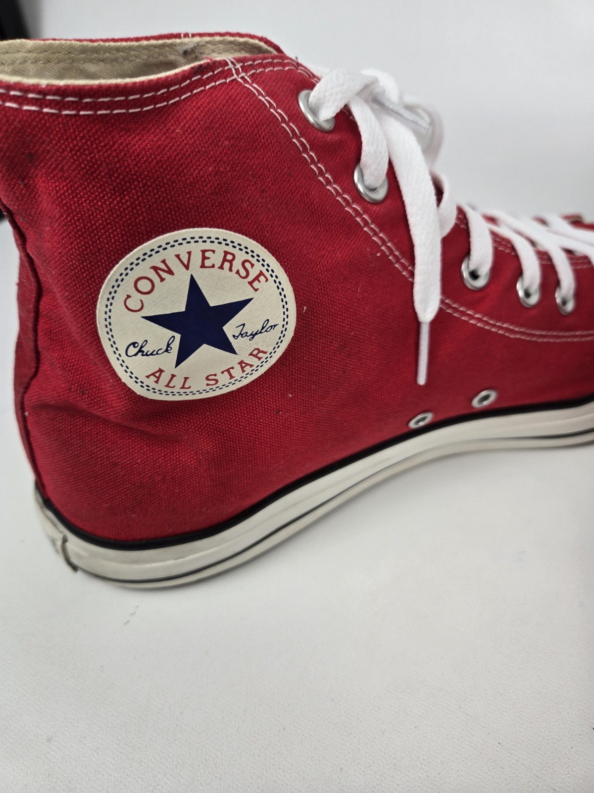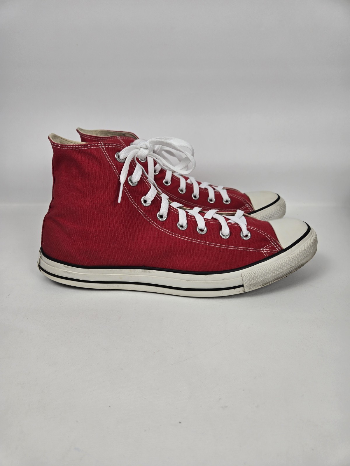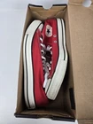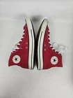 Just a classic Conver Chuck Hi Red sneaker. Make that fun statement These sneakers are pre-owned so please see all the pictures for your consideration. Box does have so damage If you should have further questions, please ask. Thank you