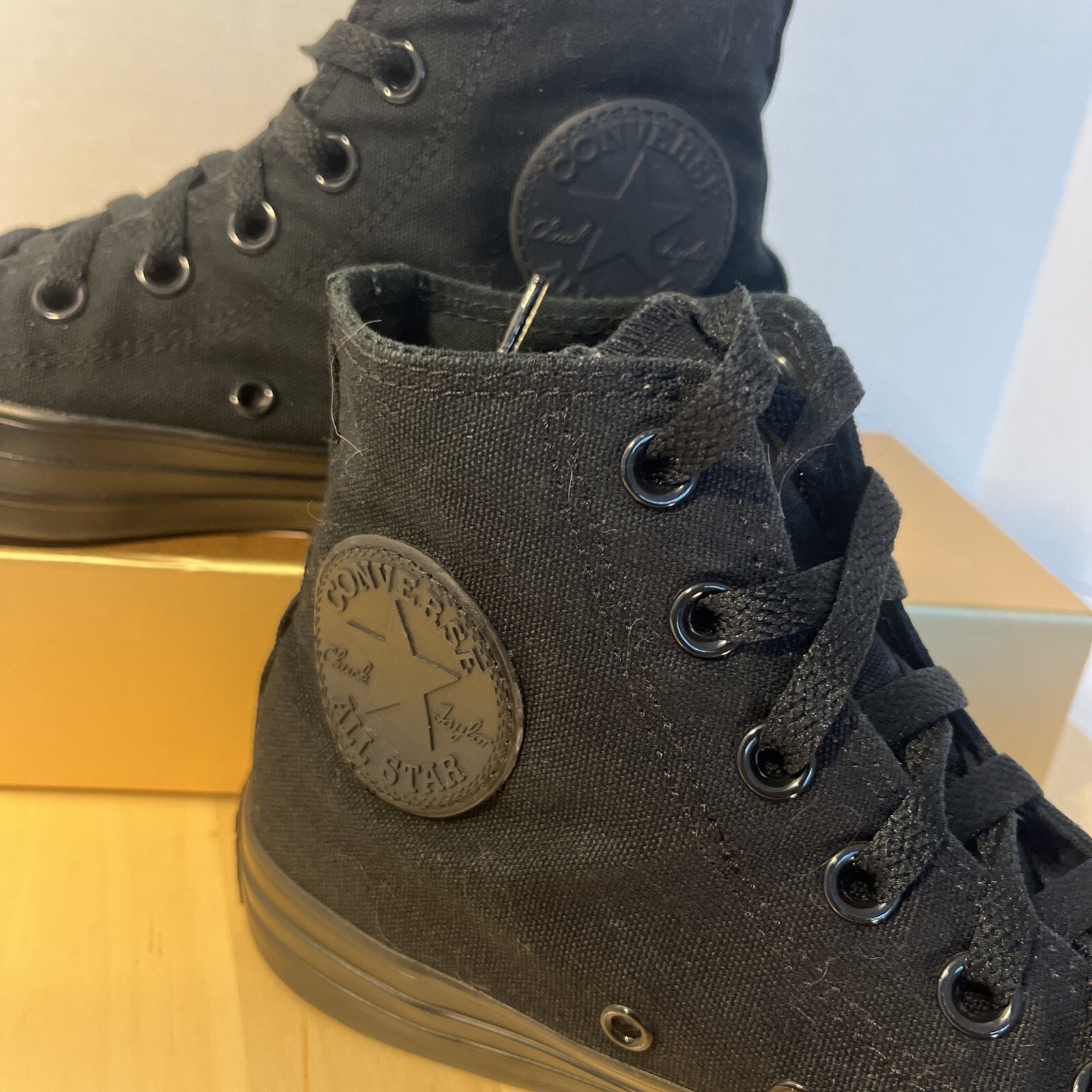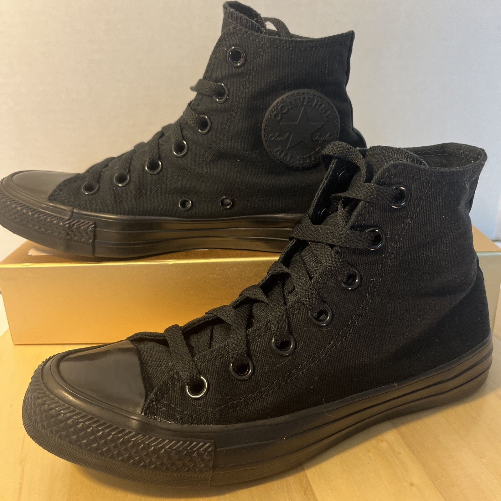 Step up your sneaker game with these Converse Chuck Taylor All Star Hi Sneakers in black monochrome. With a high top shoe shaft style, these unisex athletic sneakers feature a modern classic design with stars, making them iconic and retro. The M3310 style code of these hard to find size sneakers ensures authenticity, while the cushioned and lightweight features provide maximum comfort and breathability. Pair these Chucks with any outfit for a stylish and timeless look. The Converse Chuck Taylor All Star Hi Sneakers are perfect for any occasion, whether you're hitting the gym or just running errands. Made in Vietnam, these sneakers are part of the Converse Chuck Taylor All Star product line. Get your hands on these sneakers today and step out in style!