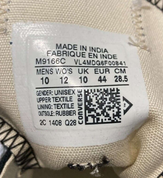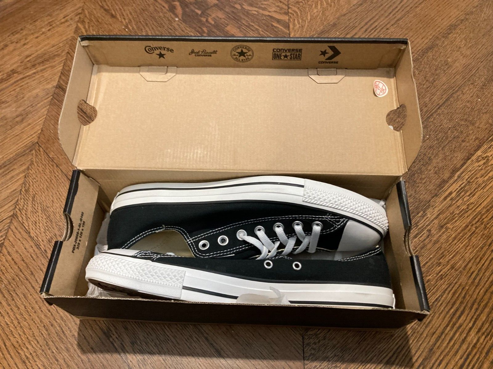 Converse Chuck Taylor All Star Black/White Low Top Sneakers US M10 W12 - M9166C Color: Black/White US Size: Men's 10 Women's 12 Item shows some signs of wear. The front of the sneakers are scuffed and the soles are slightly dirty. Item comes in the original box. Style: M9166C