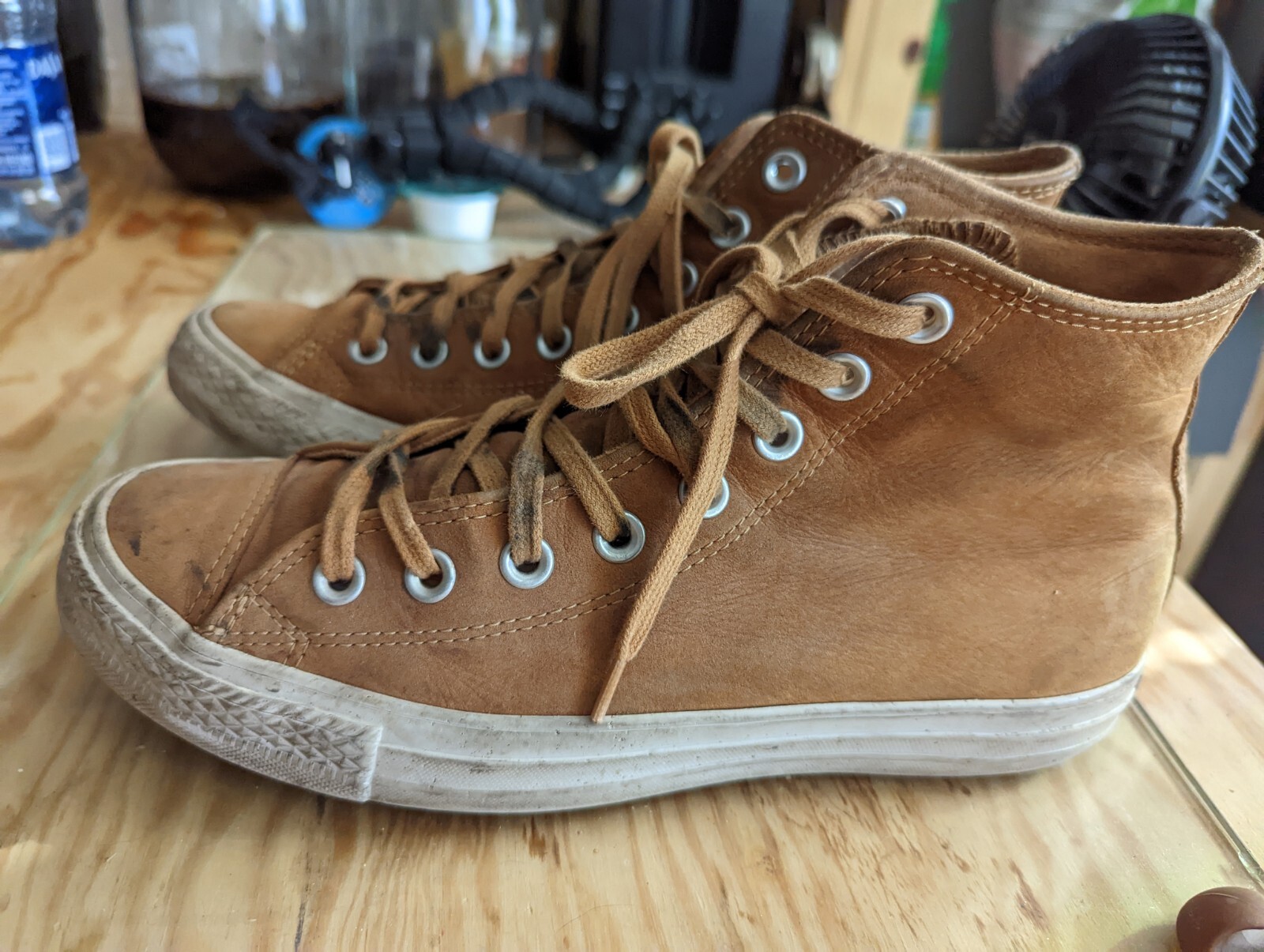 Product Line:Converse All StarColor:BrownSeller Notes:“See pics for details. Shoes in great shape, One lace tip is gone.”US Shoe Size:7UPC:Does not applyModel:Converse Chuck Taylor All Star HiType:Athleticgtin13:Does not applyDepartment:Unisex AdultsStyle Code:157522CBrand:ConverseStyle:SneakerUpper Material:Nubuck