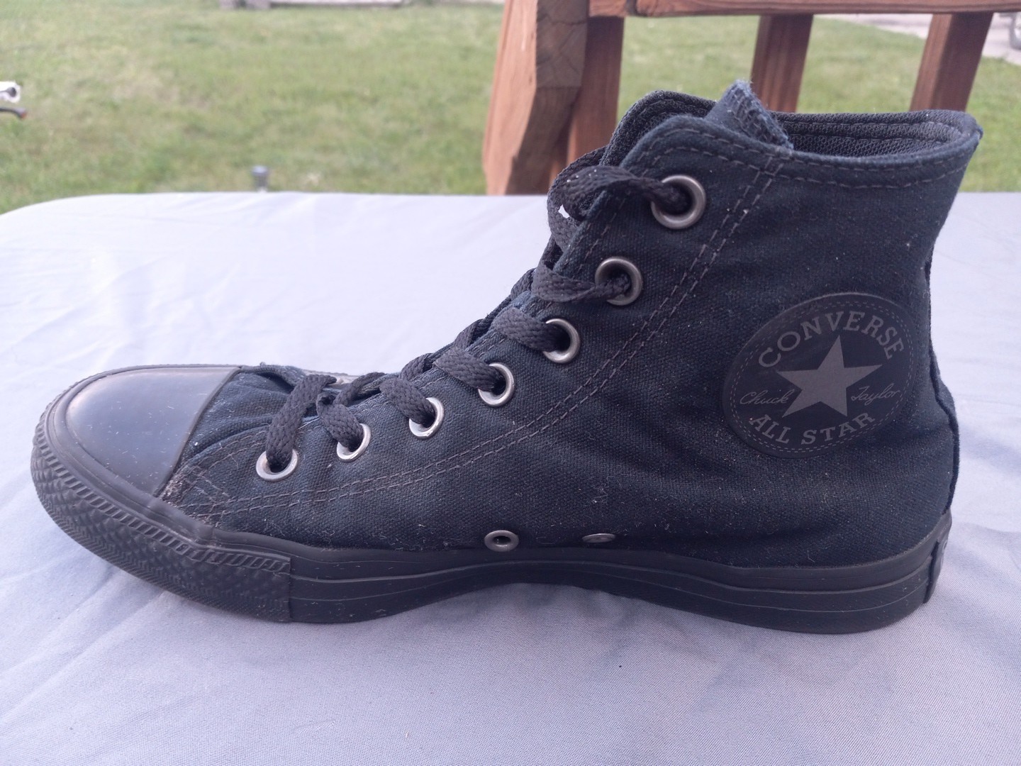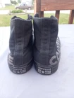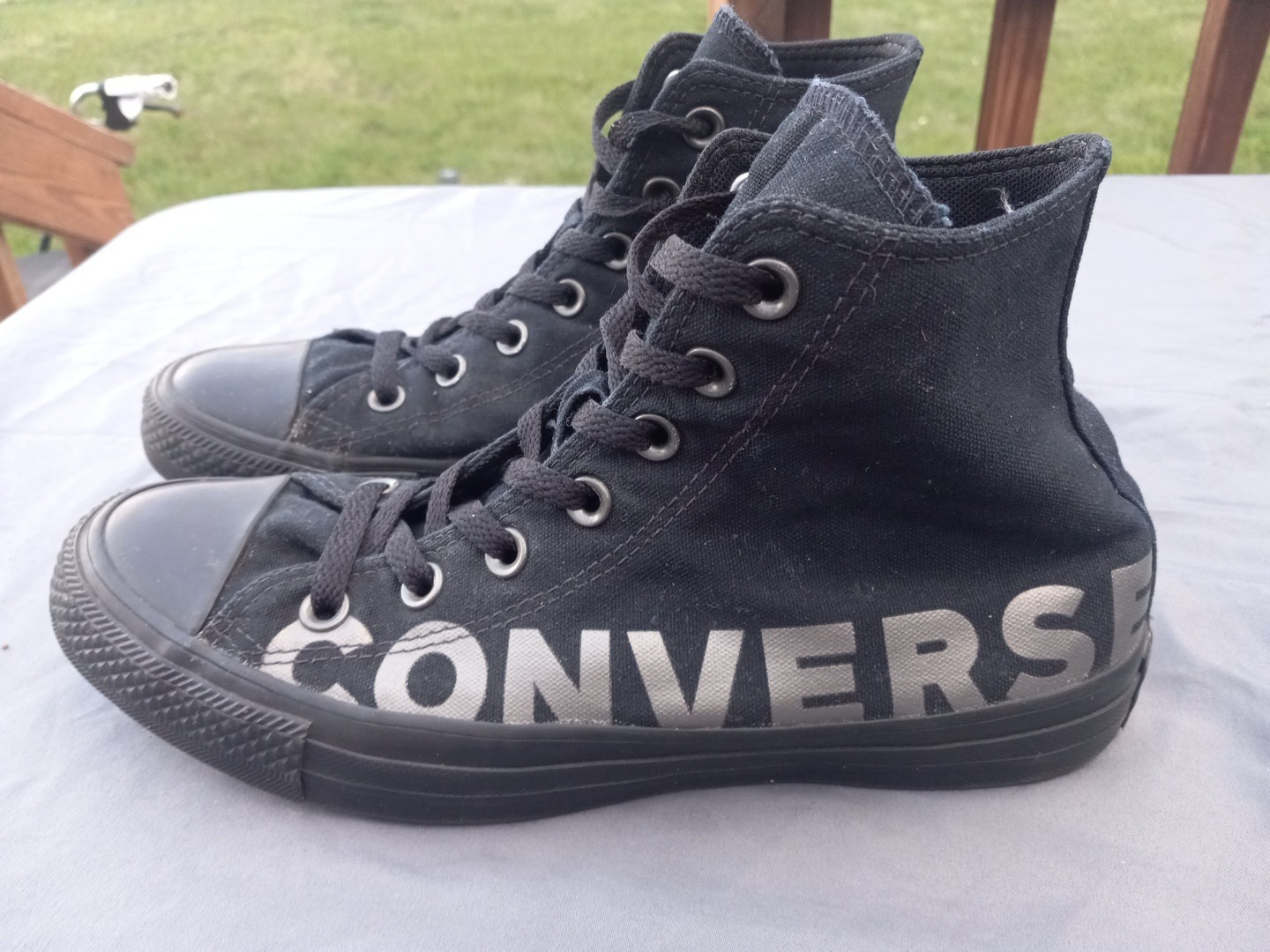 The Converse Chuck Taylor All Star Hi Wordmark Men's 6 Women's 8 Shoes in Black are a stylish and comfortable choice for casual wear. Made of canvas with a lace-up closure, these shoes feature a solid black color with the iconic Converse branding. The standard shoe width and foam insole provide comfort, making them suitable for everyday wear or even basketball activities. With a classic sneaker style and a touch of star-themed detailing, these shoes are a versatile addition to any wardrobe. In good pre-owned condition, with minor scuffs and wear, see pictures.