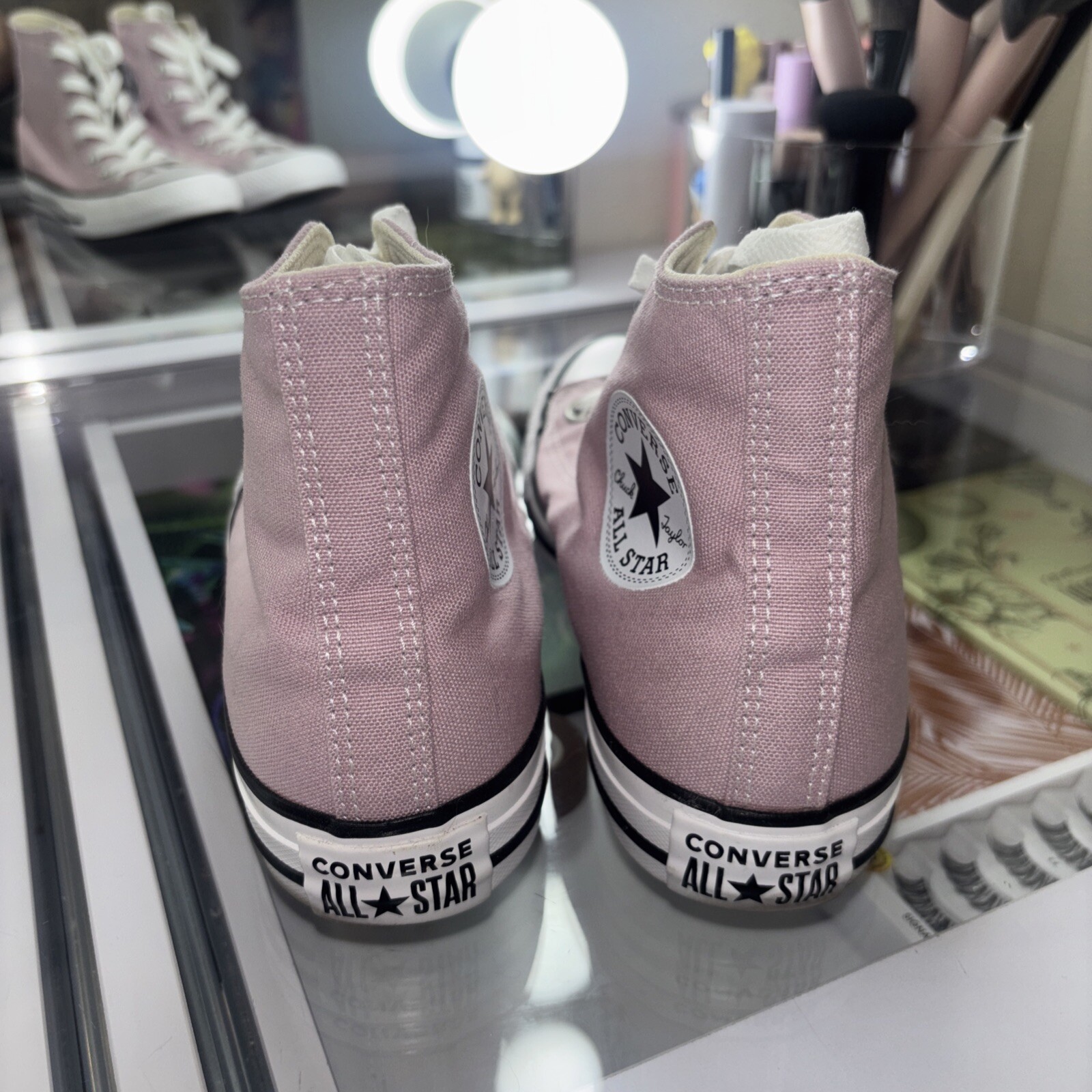This is a pair of Converse Chuck Taylor All Star High sneakers in Phantom Violet color, featuring a suede upper material with a high-top shoe shaft style. The size is US 5 in Men ,The manufacturer color is listed as Phantom Violet/Egret/Phantom Violet, and the model belongs to the Converse Chuck Taylor product line. With a classic sneaker design and the iconic Converse branding, these shoes are a stylish and comfortable choice for casual wear.