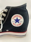 The Converse Chuck Taylor All Star Lux Hidden Heel Wedge in Black is a stylish fashion sneaker designed for women in size 7 (US) or 5 (UK). This mid-top sneaker features a hidden heel for added height and a lace-up closure for a secure fit. Made of canvas material with a wedge heel style, this shoe offers a casual yet fashionable look. Part of the Converse Chuck Taylor All Star product line, it incorporates a stars theme in its design, making it a trendy and versatile choice for everyday wear. Please look at the pictures before purchasing. These shoes are in good preowned condition. All signs of wear are documented in the photos. Please ask any questions prior to bidding. Thanks for looking!