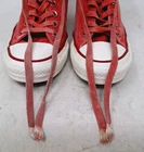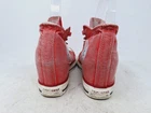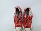 Elevate your casual footwear collection with the Converse Chuck Taylor All Star Mid Lux Washed Canvas sneakers. These fashion-forward sneakers feature a mid-top shaft style, classic lace-up closure, and a hidden heel that adds a subtle lift, making them a versatile choice for any outfit. The vibrant red canvas upper material complements the iconic Converse star theme, ensuring these shoes stand out in a crowd. Engineered for comfort and durability, the sneakers boast a robust rubber outsole and a canvas lining material, suitable for all seasons. Available in a US size 7 and equivalent to a UK size 5 or EU size 38, they maintain a standard shoe width for a comfortable fit. Embrace a casual yet stylish look with these iconic Converse sneakers that seamlessly blend everyday wear with a touch of star-studded luxury. They laces are frayed at the ends. See photos for details.