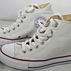 Elevate your sneaker game with these Converse Chuck Taylor All Star Mid Lux Hidden Heel Wedges. The white polycotton upper material is accented with a star theme, and the round toe shape and lace-up closure provide a comfortable fit. The low 1-1.9 inch heel height and platform style add a touch of elegance to these versatile wedges, perfect for any occasion from casual outings to dressier events. The Converse brand is known for its quality and durability, making these heels a great addition to any wardrobe.