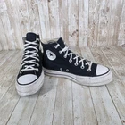 Elevate your street style with these Converse Platform Chuck Taylor All Star high-top sneakers. A timeless silhouette gets a modern twist with a chunky platform sole, adding height and a bold statement to any outfit. The classic black canvas upper is durable and versatile, while the iconic Converse star patch provides a touch of heritage. These sneakers are perfect for adding an edgy vibe to casual outings, concerts, or weekend adventures. Department: Women Color: Black UK Shoe Size: 7 Model: Chuck Taylor All Star Platform Upper Material: Canvas Features: Platform, Comfort, Cushioned, Lightweight, Breathable Style: Sneaker Character: All Star EU Shoe Size: 40 Type: Athletic Release Year: 2023 Keywords: Converse, Chuck Taylor, All Star, Platform, High Top, Sneakers, Black, Women's Shoes, Casual Shoes, Street Style, Fashion Sneakers, Canvas Shoes