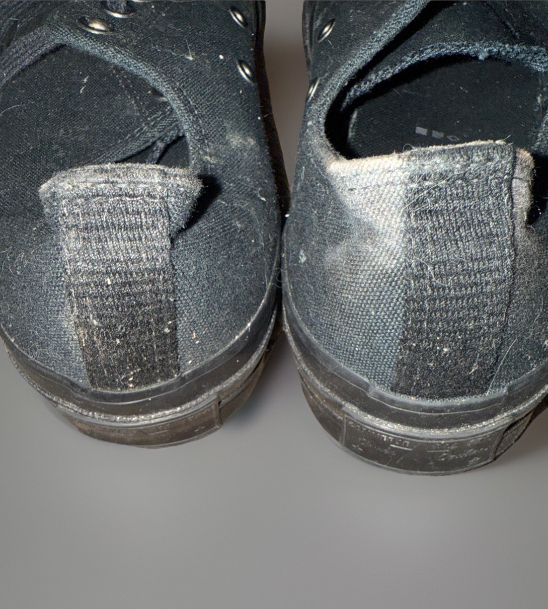They could use a wash missing a shoelace very good condition even with out the lace. The product is a style of Converse Chuck Taylor All Star sneakers in Lunarlon Triple Black, designed for men in size 10. This low top sneaker features a sleek black color and is part of the Lunarlon product line, known for its performance and comfort. Perfect for skateboarding and other athletic activities, this shoe combines classic style with modern innovation for a versatile and trendy option for everyday wear.