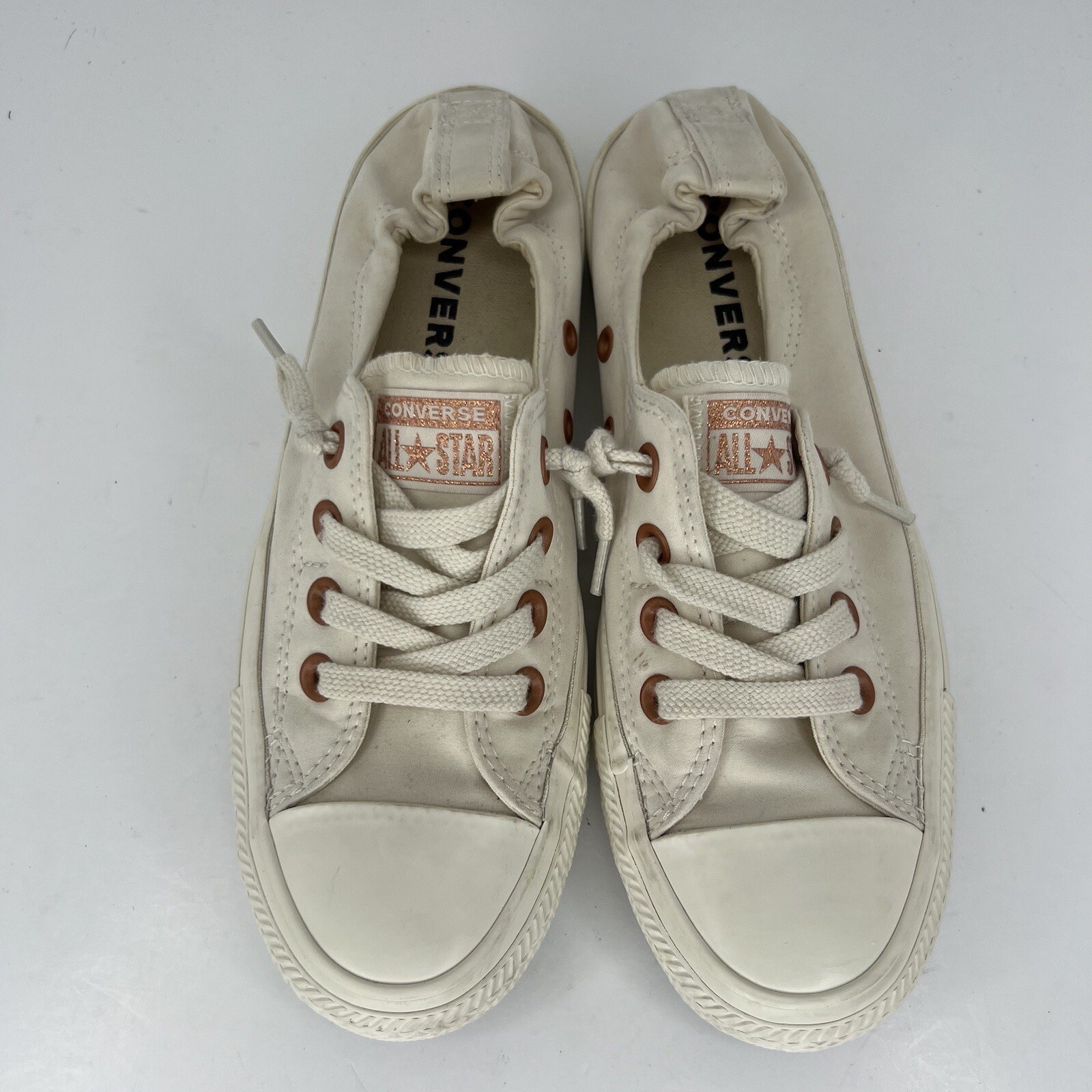 Elevate your sneaker game with these stylish Converse Chuck Taylor All Star LoTop Shoes . The canvas upper material and fabric lining provide a breathable and comfortable fit, while the rubber outsole ensures durability for any activity. The lace-up closure allows for a secure fit, making these shoes perfect for activewear, casual wear, or even workwear. With a cushioned and lightweight design, these sneakers are suitable for all seasons including winter, summer, fall, and spring. The classic Converse All Star Chuck Taylor model make these shoes a must-have for any fashion-forward woman. Whether you're hitting the gym, walking around town, or skateboarding with friends, these shoes will provide the moderate cushioning level you need for maximum performance and activity. 100% CUSTOMER SATISFACTION IS OUR GOAL! Our items are always carefully examined for condition, measured if necessary, and photographed in a climate controlled and smoke-free environment. We make every attempt to accurately describe and clearly picture the items we have for sale. Please, ALWAYS view all of the photos. We value your business and our goal is your complete satisfaction. FAST SHIPPING All items are packaged with care and shipped out the same or next business day via USPS, FEDEX, or UPS with tracking numbers so you are always informed. RETURNS We offer a 30-day return policy. All items must be unused and unopened in the condition in which they were received, with original packaging, and all accessories included for return. REVIEWS - CUSTOMER SATISFACTION - COMMUNICATION We aim to make you happy. After you receive your shipment, please leave a positive review . If you have concerns or questions about your order, please contact us so we can resolve the issue. We will do our best to make you satisfied. THANK YOU FOR YOUR BUSINESS!