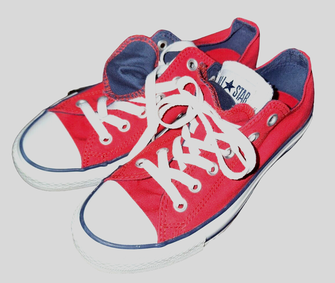 Converse Chuck Taylor Dual Tongue Sneakers Style - 135579F Size - (6 Men's) - (8 Women's) Color - Tomato (Red) White & Navy Used Nearly Perfect Condition. Please Review Photos and Ask any questions Prior to Purchasing Please Product Details Canvas Fabric Rubber Bottom Dual Tongues