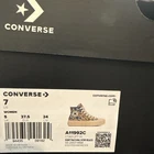 The product is a pair of Converse Chuck Taylor Lift Platform shoes for women in size 7. These sneakers feature a lace-up closure and a high-top shoe shaft style. The shoes are designed with a floral tapestry pattern on canvas fabric accents, making them perfect for casual occasions in the spring, summer, and fall. Made with rubber outsole material and offering comfort features, these platform sneakers by Converse are a stylish addition to any woman's shoe collection.