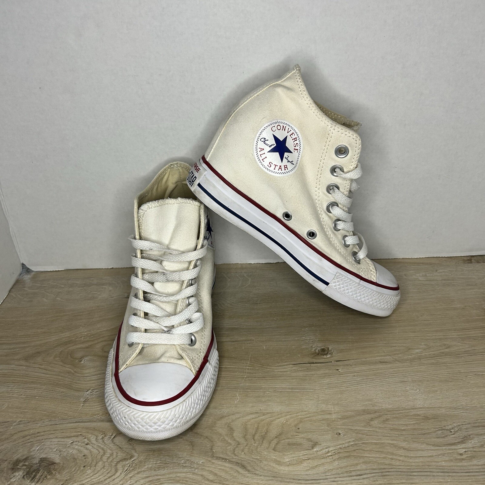 Converse Chuck Taylor hidden wedge heel. Off white ivory color. Women’s size 6.5. A couple of marks/stains may be able to be cleaned up. Otherwise in good condition