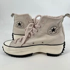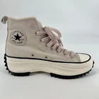Stylish and cozy, these Converse Run Star Hike sneakers combine fashion and function. These high-top sneakers feature a unique platform sole with a lugged design, providing both height and traction. The soft, faux fur lining ensures warmth and comfort, making them perfect for colder weather. The neutral color and classic Converse silhouette make them versatile enough to pair with a variety of outfits. Ideal for casual outings, weekend adventures, or adding an edgy touch to your everyday style. Department: Women Color: Beige UK Shoe Size: 5.5 Model: Converse Run Star Hike Upper Material: Leather Features: Faux Fur Lined, Platform, High Top, Comfort, Lug Sole Style: Sneaker Character: Star EU Shoe Size: 39 Type: Athletic Release Year: 2023 Keywords: Converse, Run Star Hike, platform sneakers, high top sneakers, faux fur lined, lug sole, women's sneakers, fashion sneakers, casual shoes, winter sneakers, beige sneakers, size 8, leather sneakers, comfortable sneakers, stylish sneakers