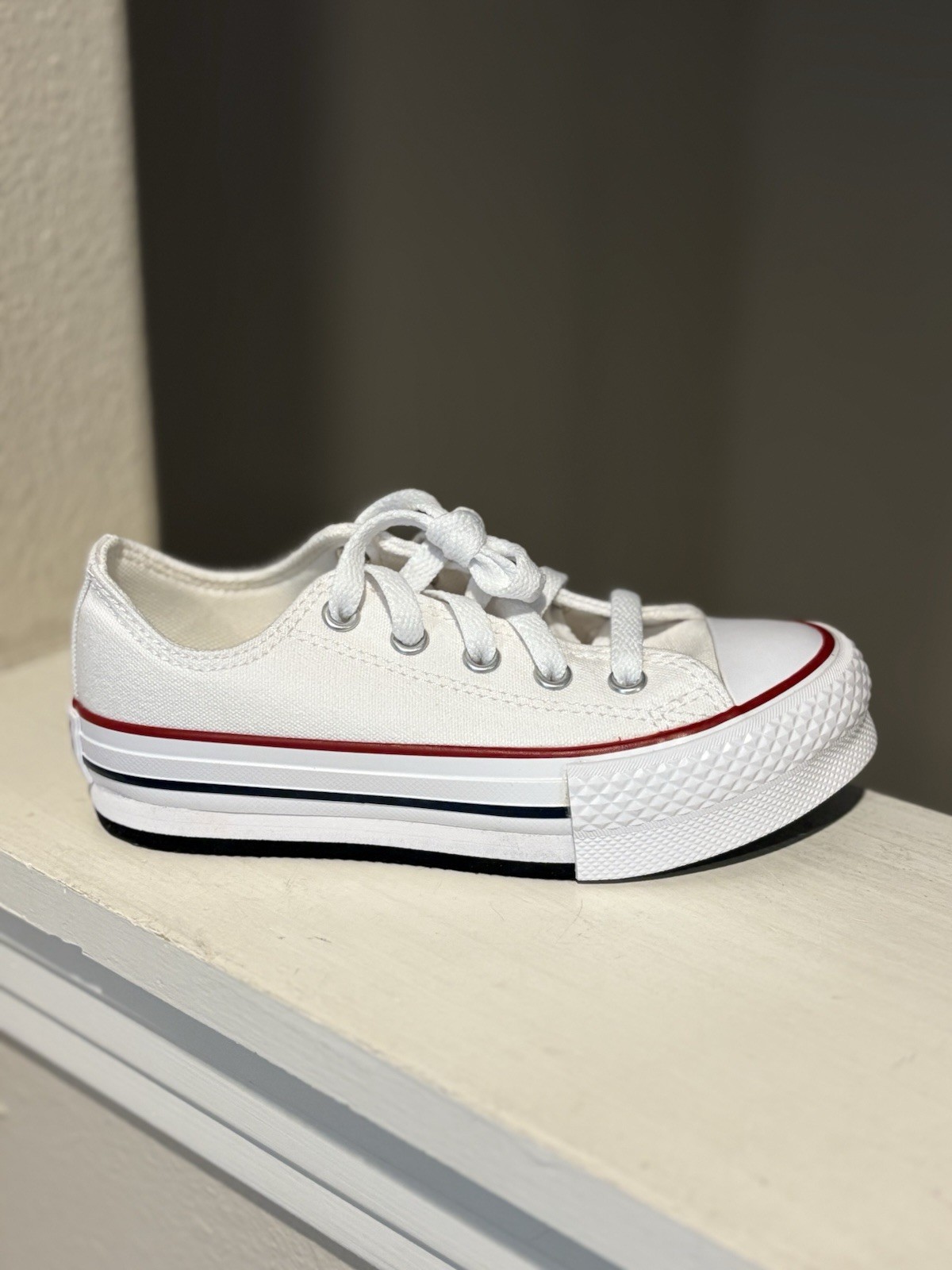 Closure:Lace UpFabric Type:CanvasProduct Line:Converse All StarHeel Style:FlatPattern:SolidStyle:SneakerBrand:ConverseDepartment:Unisex KidsShoe Width:StandardColor:WhiteHandmade:NoModel:Converse Chuck Taylor All Star LiftTheme:StarsUS Shoe Size:13Toe Shape:Round ToeUPC:194433487986gtin13:194433487986Type:Casual