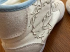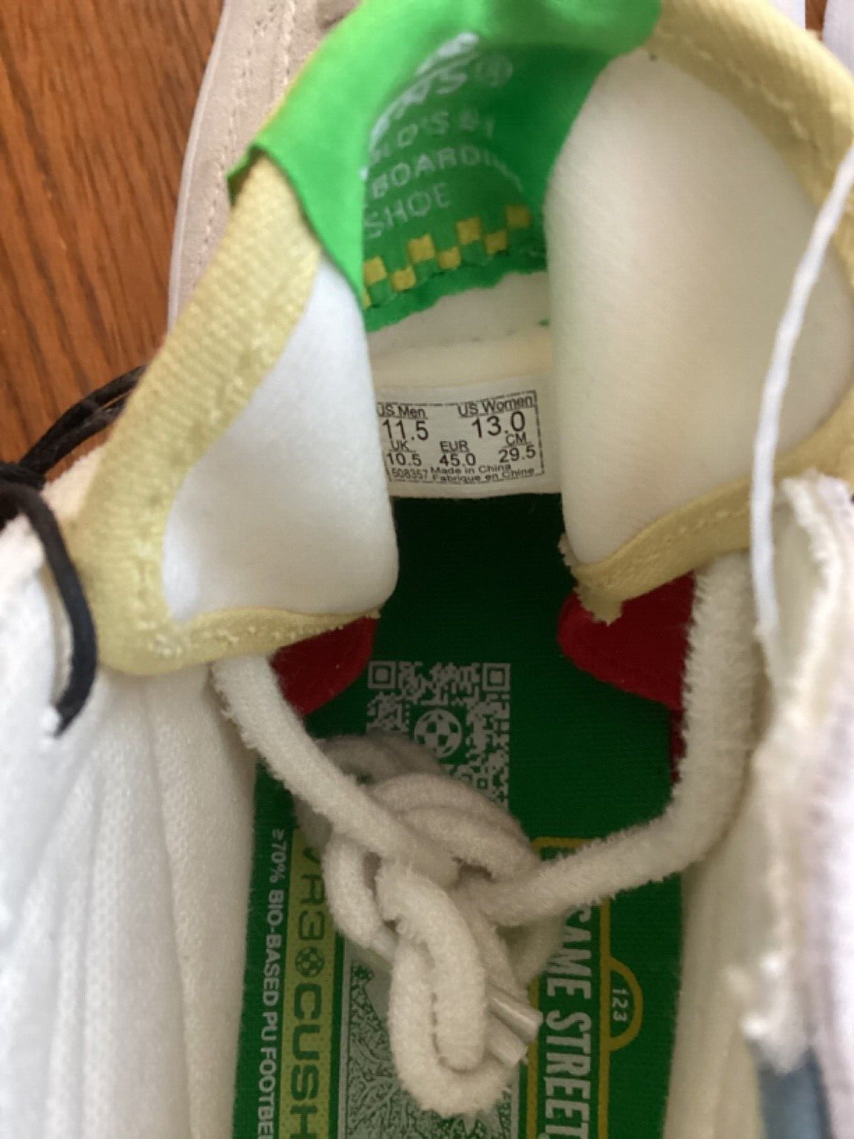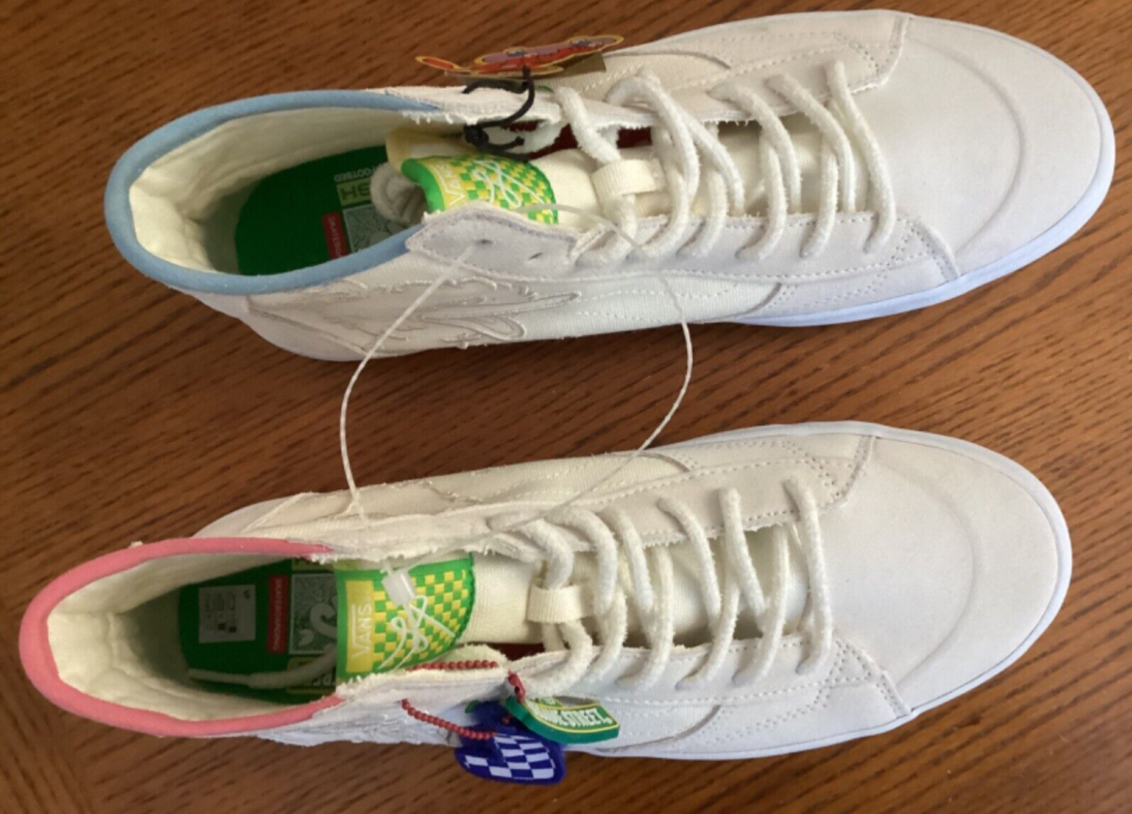 Get ready to hit the skateboard ramp with these Converse x Sesame Street Lizzie Skateboarding Shoes! These cream-colored sneakers are perfect for both men and women, with a US shoe size of 11.5 M or 13W. The Converse Street model is designed for athletic activities, and the skateboarding performance/activity aspect ensures a comfortable fit and durable wear. The shoes feature the iconic Sesame Street character, Lizzie, and are ideal for fans of the children's show. The unisex adults' department makes these shoes a versatile addition to any wardrobe, and the sneaker style ensures they can be worn for any casual occasion. Don't miss out on this limited edition collaboration! Bubble wrapped and shipped in a box.