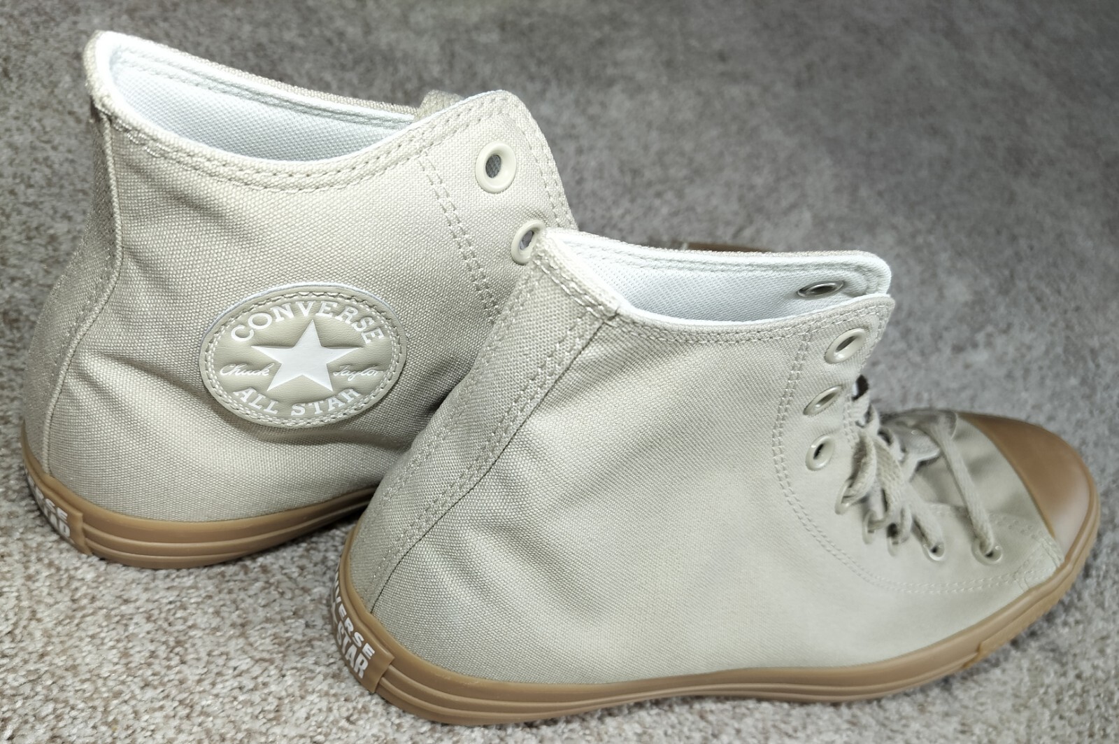 Brand New with Box - Shipped Protected in another Box Color: Beach Stone/Vintage White on Ankle Patch RARE: Non-White Laces + Non-White Outsoles [Size Guide] This Listing Size: Men's 11.5 (Please DO NOT place the order if you normally wear size 11.5 shoes) - Loose Fit: We recommend ordering a half size down (Order ONLY IF you normally wear size 12 shoes) Monochrome Chucks go with everything, so you‘re ready for anything. CLEAN AND CLASSIC Dress 'em up, dress 'em down—however you style it, these high tops add a refined touch to every outfit. Plus, gum rubber gives your everyday look a vintage touch. Durable canvas upper with that classic Chucks look and feel OrthoLite cushioning helps provide optimal comfort Monochromatic details allow for easy pairing Gum rubber midsole and toe cap bring a vintage vibe Iconic Chuck Taylor ankle patch and All Star license plate SKU: A09824C
