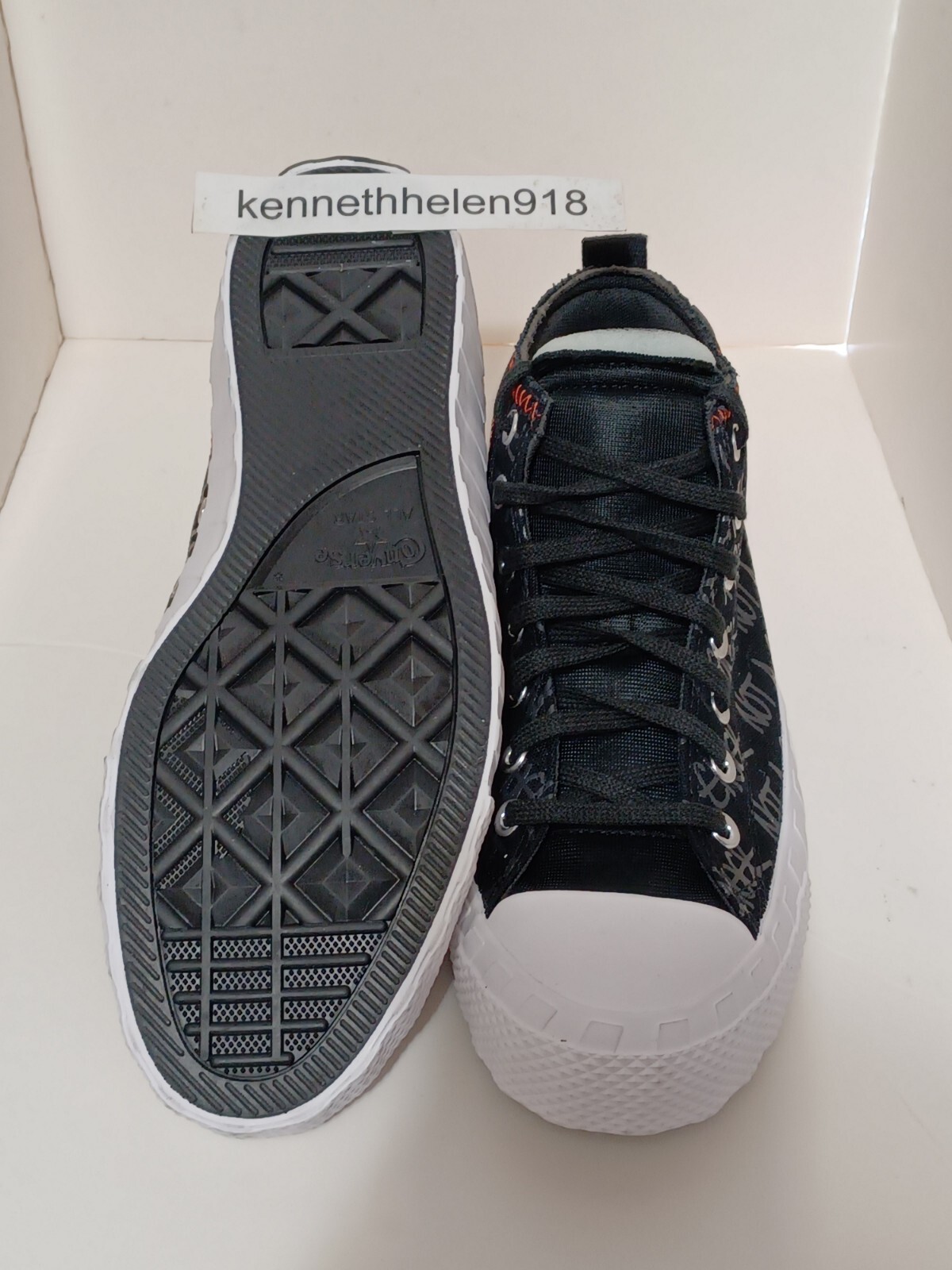 NEW CONVERSE UNT1TL3D MID SNEAKERS STYLE NUMBER: A04382C COLOR: BLACK MENS SIZE:US 10 BUYER NOTE: WHAT YOU SEE WHAT YOU GET, PICTURE SHOW THE ACTUAL GOODS. BRAND NEW WITHOUT BOX 100% Authentic Guarantee Product Details he Converse UNT1TL3D Mid blends the quirky mint of Halloween to offer you a distinctively bold look. These stylish chuck shoes chop down from a high to a mid-top that adds an interesting flair to your valiant look. Featuring a canvas upper and polyester tongue, these mid-top shoes offer breathability and keep you easy throughout the day. Offering a vibrant and peppy look, the Converse UNT1TL3D Mid is an exclusive pick to treat your feet. Heel pull enables easy on and off. SmartFOAM cushioning delivers all-day comfort. Mid-cut inspired by Halloween legends brings a classic look. All-over "Not A Chuck" graphics offer a bold style.