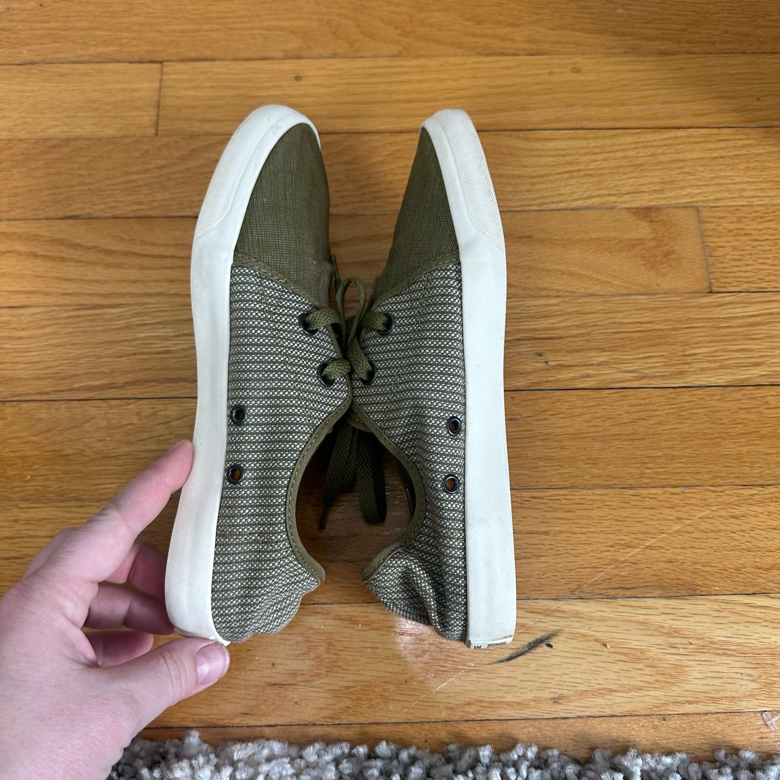 Just got these and they're amazing! The olive green with white stripe is such a cool combo, and they fit perfectly. Super comfortable and the style is unique—definitely a great find!