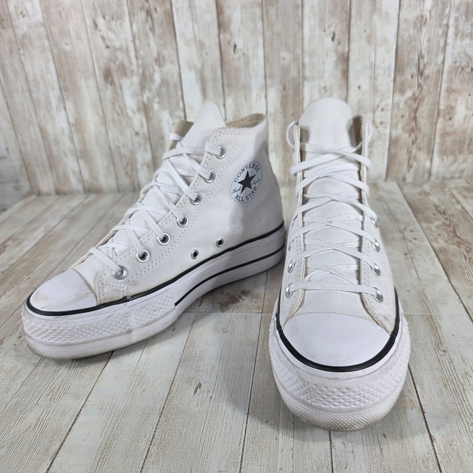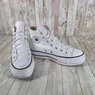 Elevate your street style with these iconic Converse Platform Chuck Taylor All Star high-tops. A crisp white canvas upper provides a clean, classic look, while the platform sole adds a modern edge and a subtle boost in height. Silver-tone eyelets enhance the shoe's durability and visual appeal. The signature Converse All Star logo patch on the ankle adds a touch of heritage and authenticity. These sneakers are perfect for adding a cool, casual vibe to your everyday outfits, whether you're heading to a coffee shop, exploring the city, or meeting friends for a laid-back weekend brunch. Department: Women Color: White UK Shoe Size: 5.5 Model: Converse Chuck Taylor All Star Platform Upper Material: Canvas Features: Platform, Comfort, Breathable, Lightweight Style: Sneaker Character: All Star EU Shoe Size: 38 Type: Athletic Release Year: 2023 Keywords: Converse, Chuck Taylor, All Star, Platform, High Top, Sneakers, White, Women's Shoes, Casual Shoes, Streetwear, Fashion Sneakers, Canvas Shoes