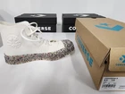 Converse Renew Chuck 70 High Top Shoes – A Sustainable Classic for a Better Future Step into the future of sustainable fashion with the Converse Renew Chuck 70 High Top Shoes. Crafted with an eco-conscious design, these iconic high tops are part of the Renew lineup, made with at least 25% recycled content by total weight. The breathable, engineered stretch-knit upper is composed of approximately 85% recycled polyester, delivering both comfort and durability. The translucent midsoles and outsoles are made with about 12% recycled rubber scraps from the footwear manufacturing process, adding a unique design element and a story of sustainability to every step. This Chuck 70 features 100% recycled polyester laces and a recycled OrthoLite sockliner , ensuring a comfortable fit while staying true to Converse’s eco-friendly mission. Designed for the modern, conscious consumer, these shoes combine the heritage and craftsmanship of the Chuck 70 with innovative materials that look good and do good. Key Features: Color: Egret/String/Barely Volt (White/Light Green Accents) Size: Men's 5.5 / Women's 7.5 (Unisex) Upper Material: Engineered stretch-knit made with about 85% recycled polyester threads for breathable, flexible comfort. Eco-Friendly Construction: At least 25% recycled content by total weight. Midsole/Outsole: Translucent rubber outsole made with about 12% recycled rubber scraps. Laces: 100% recycled polyester. Insole: About 75% recycled OrthoLite sockliner for all-day comfort. Design: Part of the Converse Renew series, focusing on reducing waste and promoting sustainability. Shipping: WORLDWIDE SHIPPING. Orders processed within 48-72 hours of payment verification. We only ship to confirmed PAYPAL addresses. Your PAYPAL address MUST MATCH your Shipping address. The images shown are not the actual item and are for your reference only. SERVICE TRANSIT TIME is provided by the carrier and excludes weekends and holidays. Transit times may vary, particularly during the holiday season. Contact Us: You can contact us by leaving us an eBay message or emailing us via your PayPal address. We’ll reply to your query within 24 hours from Monday to Friday, excluding holidays.