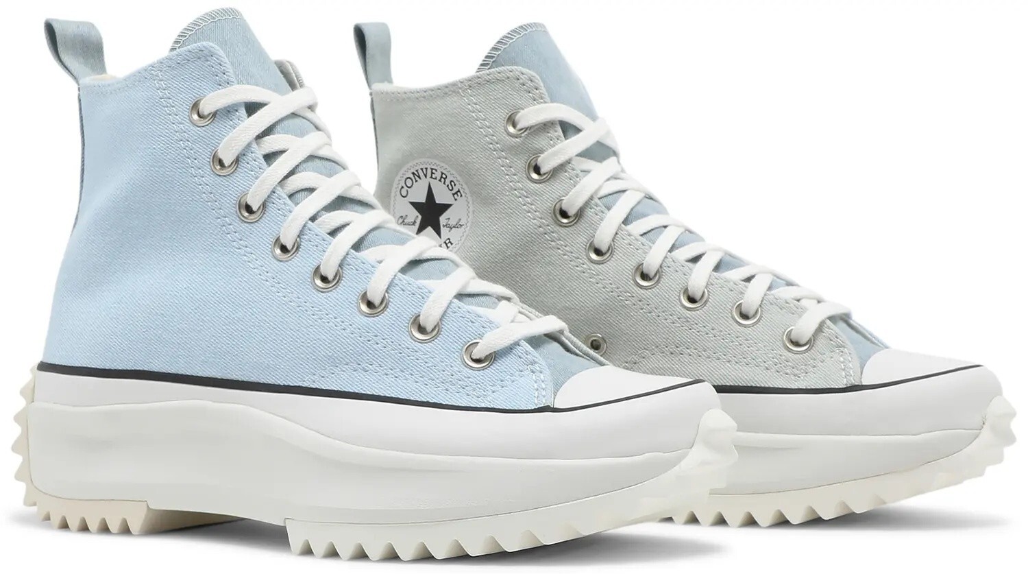 The Converse Run Star Hike High ‘Summer Denim’ applies subtle color blocking to the platform high-top. The sneaker’s side panels, tongue and heel overlay are all constructed from washed denim and finished in varying shades of blue. Accented with a standard All Star ankle patch, the upper is mounted on a raised midsole with color-matched One Star detailing at the heel. Underfoot, a decoupled rubber outsole features an exaggerated tread for superior grip. • Brand: Converse • Model: Run Star Hike High 'Summer Denim - Blue' • SKU: 171894C • Colorway: Blue/Vintage White/Black • Upper Material: Denim • Size: US M3.5/W5.0