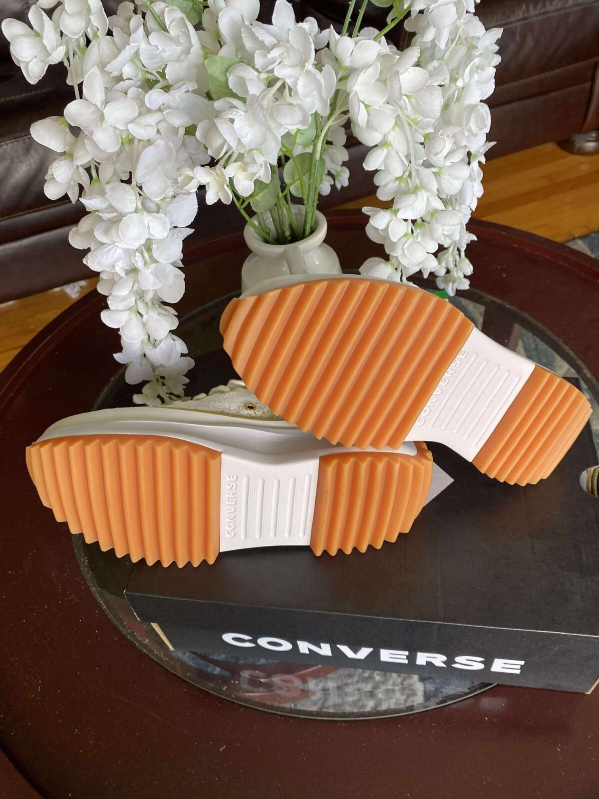 Converse Run Star Hike High Top Sneakers Women Size 8 Gold and cream New in box