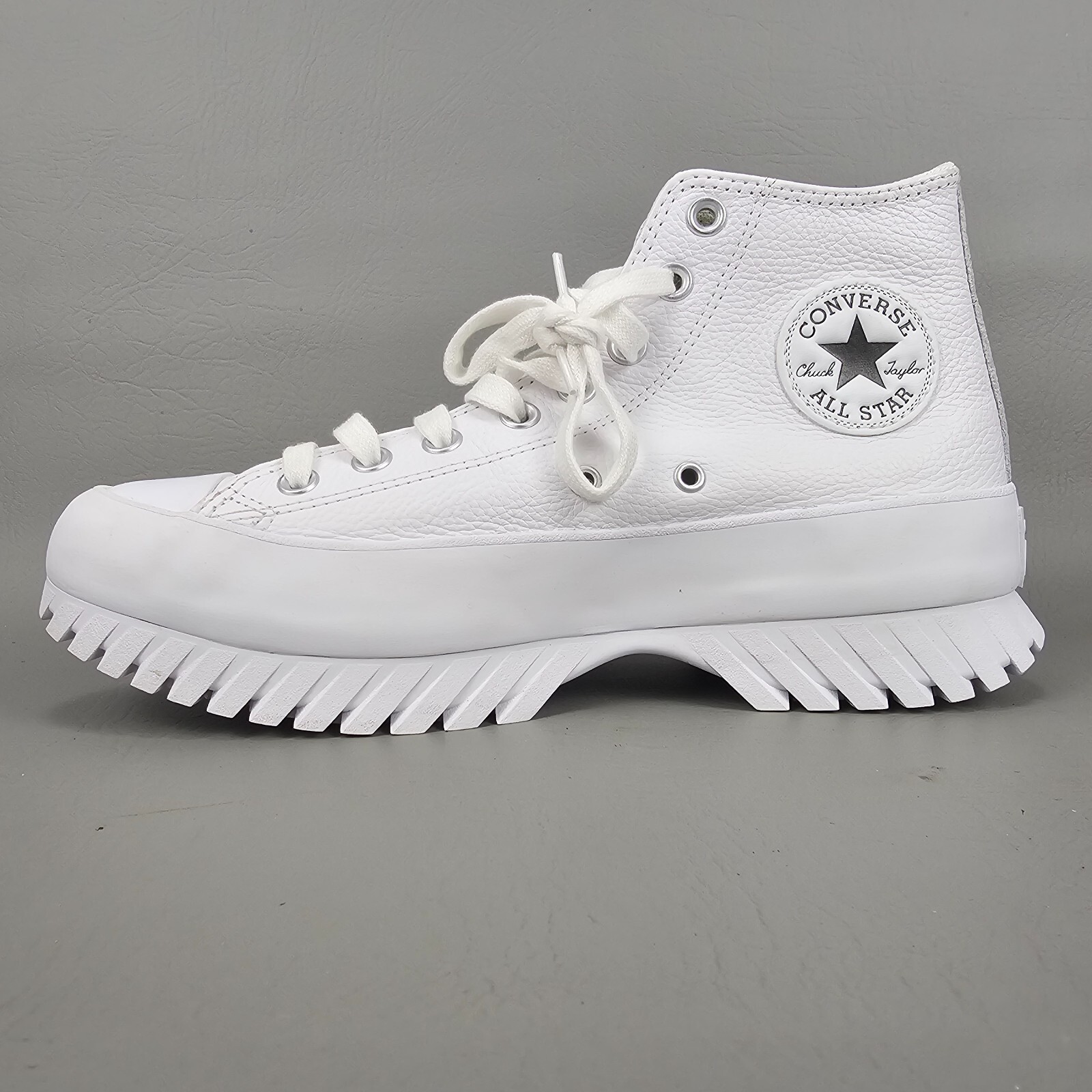 Shoe Shaft Style:High TopColor:WhiteBrand:ConverseUS Shoe Size:7.5Upper Material:LeatherModel:Chuck Taylor All Star Lugged 2.0Department:Unisex AdultsCountry/Region of Manufacture:VietnamEU Shoe Size:41Type:AthleticUK Shoe Size:7.5Seller Notes:“Shoes only worn a couple of times (never outside). See photos.”Vintage:NoStyle Code:A03705CStyle:Sneaker