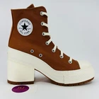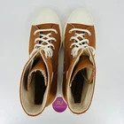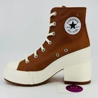 Converse Women's Chuck 70 De Luxe Heel Sneakers Tawny Owl/Egret/Gum Size 9 The Chuck 70 De Luxe pairs unmistakable Chuck Taylor design elements with a bold, lugged heel for a fresh spin on a favorite. This edition takes your style even further, with a cotton twill upper and neutrals for easy pairing with your whole wardrobe. WHY YOU SHOULD BE DOWN High-top heeled-shoe with durable canvas upper OrthoLite cushioning for comfort Lugged sole for grip Cotton twill upper, backstay, vamp, and tongue Classic Chuck Taylor ankle patch Item is new without tags but was a store floor model. Smoke free. No box. I always carefully package, box and ship immediately. Reach out with any questions! Pair in the photos is exactly the pair you will receive.