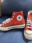 Elevate your athletic style with these Converse sneakers in a striking red color. Designed for men, these shoes are perfect for any casual occasion. With a US shoe size of 5, these sneakers are a perfect fit for most individuals. The brand's reputation for quality is evident in the durability and comfort of these shoes. The sleek design and versatile style of these Converse sneakers make them a must-have for any wardrobe. They are perfect for athletic activities or simply for everyday wear. Add a touch of style to your outfit with these sneakers.