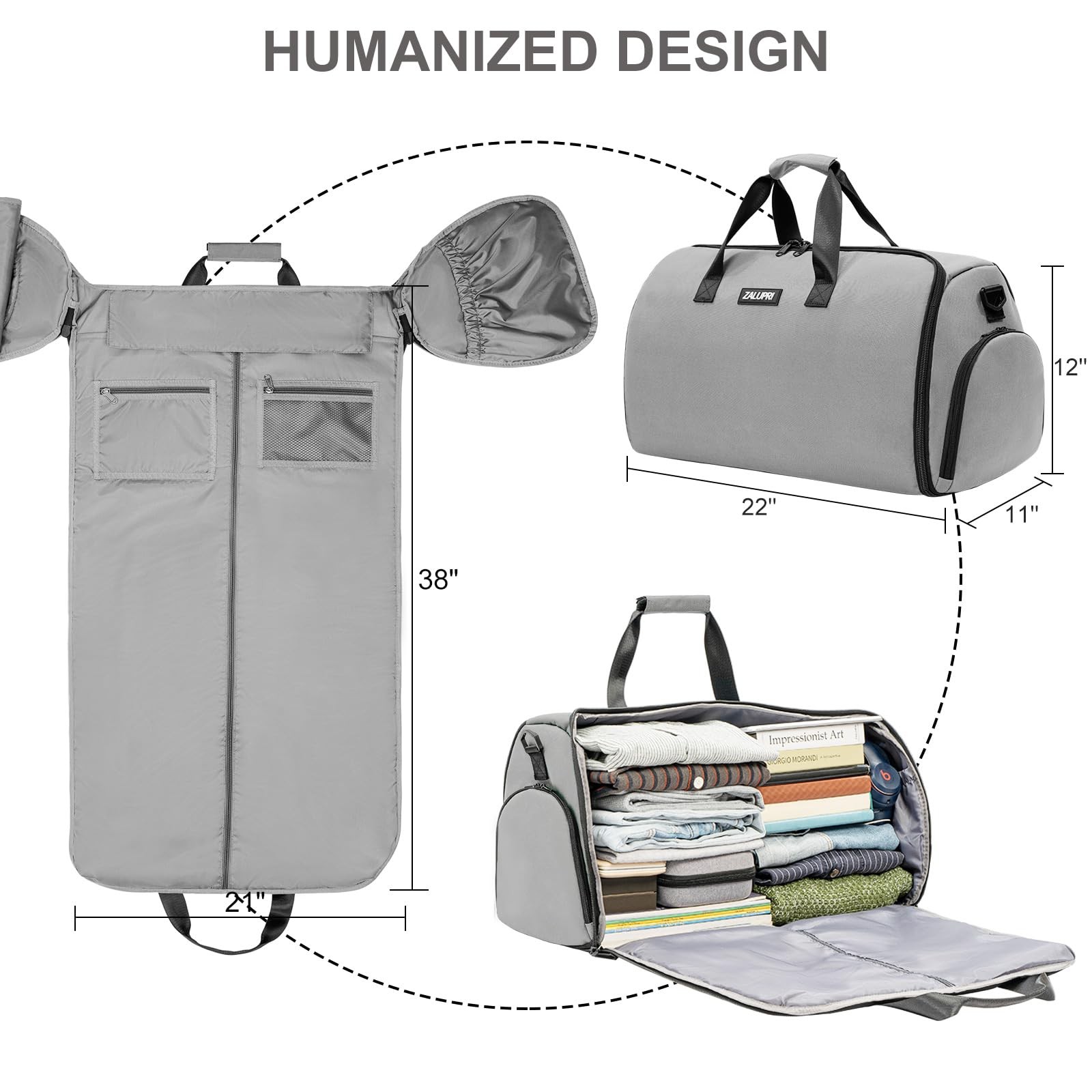 This convertible garment duffel bag is a game-changer for travel! The smart design effortlessly transforms from a weekender to a hanging bag, keeping clothes wrinkle-free. I love the 7 well-organized compartments—perfect for suits, shoes, toiletries, and essentials. The durable, water-resistant material holds up great, and the detachable straps make carrying a breeze. Super spacious yet compact enough for carry-on. A must-have for business trips or quick getaways!
