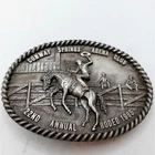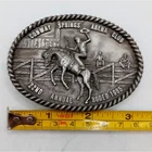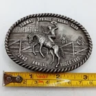 Conway Springs Rodeo Belt Buckle Vintage 1985 Kansas Bronc Rider Horse Arena Club -Buckle Connection -Measures about: 3 3/8 x 2 3/8" -Typical scuffs n scrapes from wear and age. -Limited edition. -Please view all photos for details Size: Mens 3 3/8" x 2 3/8" Condition: Pre-Owned Good -Buckle Connection -Measures about: 3 3/8 x 2 3/8" -Typical scuffs n scrapes from wear and age. -Limited edition. -Please view all photos for details