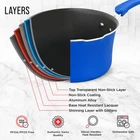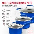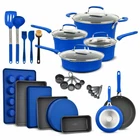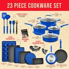 POTS AND PANS – with two sauce pots, a Dutch oven pot and jumbo cooker included you can boil, broil and simmer a range of food items up to a maximum temperature of 500° Fahrenheit (260° Celsius). All our pots come with see-through tempered glass lids for added versatility and measurements inside the pots for convenience. Also included are a small fry pan and a medium fry pan for eggs, pancakes and so much more! COOKWARE SET – update your existing cookware to our professional home kitchenware which features a massive 23 items! Everything you need to create top class meals is included. Our entire pots and pans set has a durable and long lasting non-stick coating as well as comfortable and cool to touch form-fitting handle grips for your convenience. Made from reinforced pressed aluminum metal they are the must have cook set for your home SUITABLE FOR YOUR COUNTER COOKTOP – we have designed our cook ware to be compatible with gas, electric, ceramic and induction counter cooktops. Our pan set is food grade safe and suitable for all abilities and is designed to effectively distribute and retain heat for all-round even cooking. With an integrated plaid wave pattern for exceptional non-stick surfaces in all pans POTS AND PANS – with two sauce pots, a Dutch oven pot and jumbo cooker included you can boil, broil and simmer a range of food items up to a maximum temperature of 500° Fahrenheit (260° Celsius). All our pots come with see-through tempered glass lids for added versatility and measurements inside the pots for convenience. Also included are a small fry pan and a medium fry pan for eggs, pancakes and so much more! UTENSILS INCLUDED – we want you to have everything you need when roasting, baking and preparing delicious meals and snacks which is why we have also included heat-resistant kitchen tool utensils with our pan set. The soup ladle, spatula, brush and measuring spoons are made from engineered silicone and all match the design of the pots and pans so you can enjoy modern cookware in your kitchen LONG LASTING TECHNOLOGY – our pots and pans and bakeware set items are all stain resistant and easy to clean. They are dishwasher safe, but we recommend handwashing for better results. The environmentally friendly construction, stylish color choice and extensive collection of items makes this induction cookware an all-rounder for beginners and experts alike. It is a great gift idea for those starting out in their first home, newlyweds or for friends and relatives who love to cook