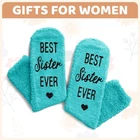SISTER GIFTS: The charming message "BEST SISTER EVER" is a fun and heartfelt way to let her know she's treasured. These socks are a one-of-a-kind present that's as unique as your sister. SIZE & MATERIAL: Stay cozy and warm with our socks. Designed to fit women's shoe sizes 6–12 (sock sizes 8–13), these socks offer a snug fit. The non-slip soles provide extra grip on hardwood and tile floors, ensuring comfort. CUPCAKE PACKAGING: To ensure easy transportation, they are not assembled. However, we provide a gift box and a paper belt with each pair. With just a minute of your time, you can enjoy the fun of making a gift box that looks like a lovely cupcake. SISTER GIFTS FROM SISTER: Whether you're looking for unbiological sister gifts, little sister gifts, bonus sister gifts, soul sister gifts, twin sister gifts, or step sister gifts, our sister socks are the best presents for sister for any occasion. COOL GIFTS FOR SISTER: Give your sister a gift that's both cool and versatile. Our socks are ideal for Mother's Day, Rakhi, Christmas, or birthdays, adding a festive touch to her celebrations.