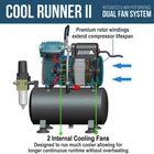 Professional Master Performance Acrylic Paint Airbrushing System with a multi-purpose G22 precision dual-action gravity feed airbrush with a 0.3 mm tip and a 1/3 oz. gravity fluid cup. Includes bonus Quick Start Guide and Airbrush Resource Center Access Card. Model TC-326T Cool Runner II superior performance powerful 1/5 hp single-piston compressor with two cooling fans that allow it to run much cooler for a longer continuous running time without overheating. The large 3 liter air storage tank allows constant air pressure and zero pulsation. This deluxe airbrushing system also includes a 6 foot braided air hose, quick disconnect with plug, compressor mounted dual airbrush holder, clamp-on airbrush holder for 4 airbrushes, 3 in 1 use airbrush cleaning pot and a paint mixing stick and cup 50 pack kit. U.S. Art Supply Water-Based Acrylic Airbrush Paint Kit with 24 Popular Colors (24 Colors in 1 oz. Bottles plus Reducer and Cleaner). Our vibrant acrylic airbrush colors have outstanding airbrush flow characteristics and are designed for permanent results on most mixed-media & textile surfaces. 100% Satisfaction Guarantee: Buy with confidence, if you're not satisfied with this airbrush at anytime within the first year of purchase or the compressor within the five years of purchase, we'll provide a refund or replacement.
